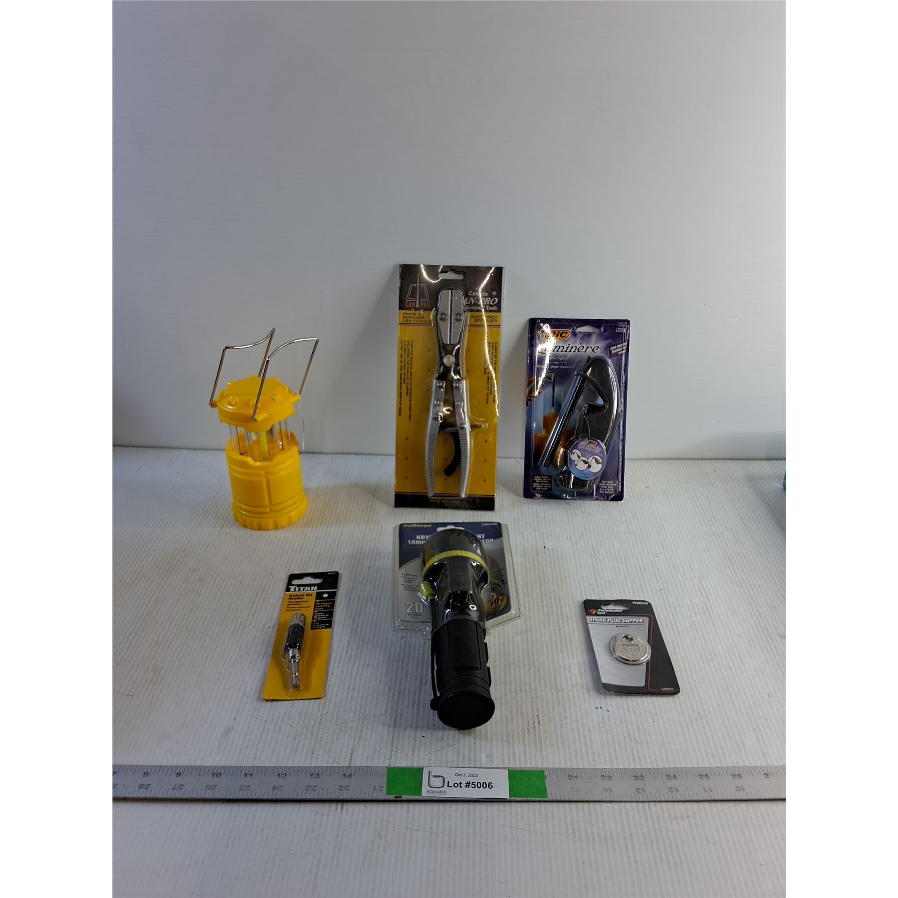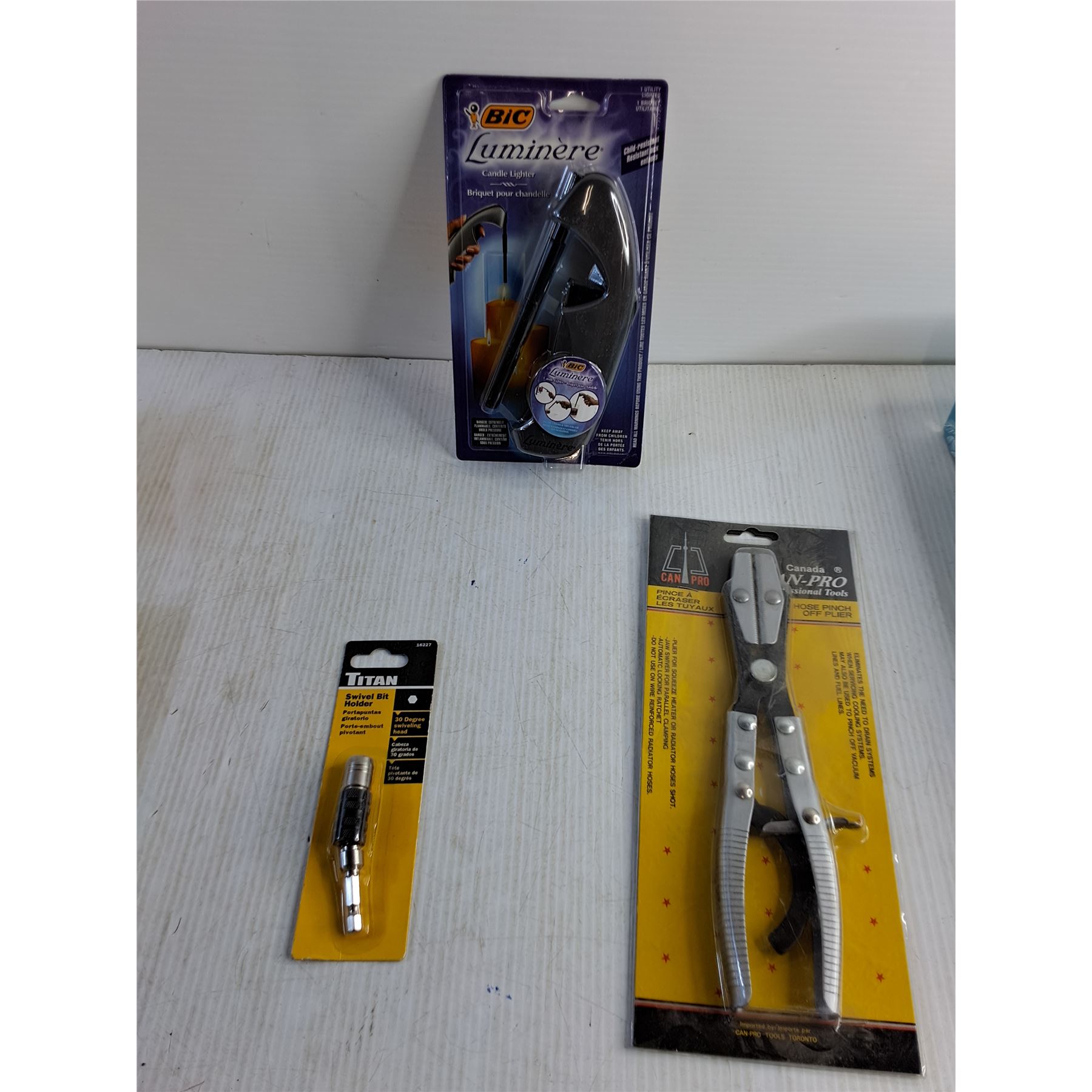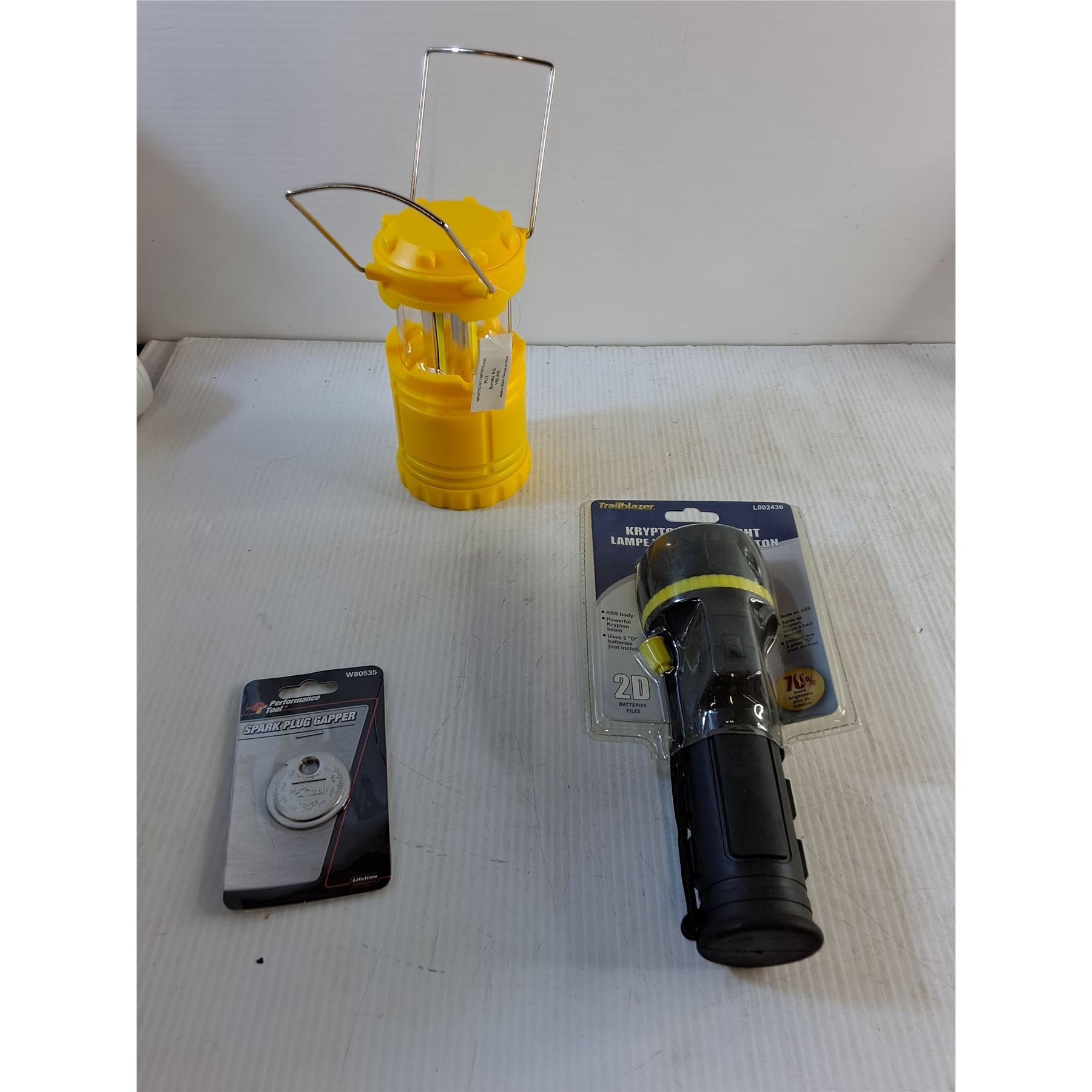 Lantern, Can-Po Hose Pincher, BIC Candle Lighter, Titan Swivel Bit Holder, Krypton Flashlight, Spark