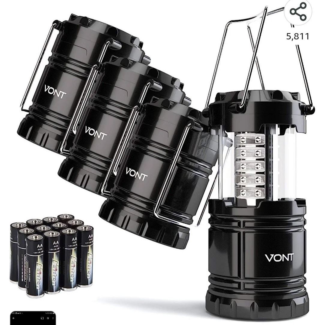 4 Pack, Vont Camping Lanterns, Super Bright, 30 LED's Per Lantern, Water Resistant, 3 AA Included, Shelf Pull, New Condition