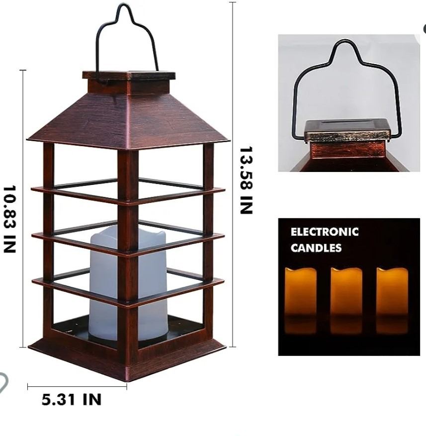 Newvivid 2 Pack, Hanging Garden Lanterns, LED Flameless Candle Solar Powered, Black, Open Box, Like New Condition