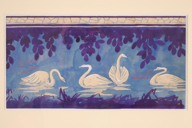 9.5h x 18w inches, gouache on paper, stamped and dated Mulhouse France 1926, ref no.2675, framed. Provenance: Collection ESSEF France