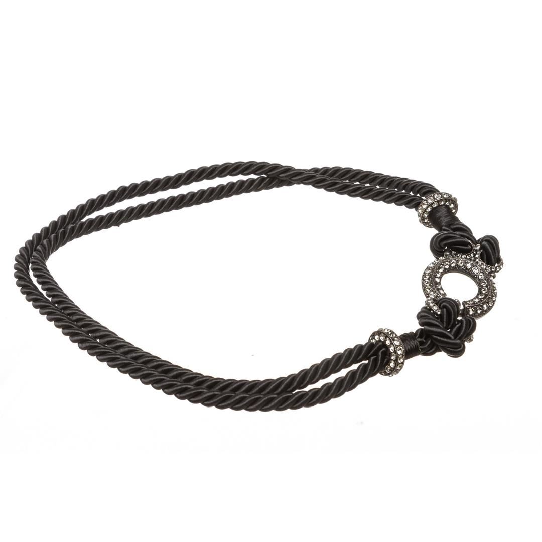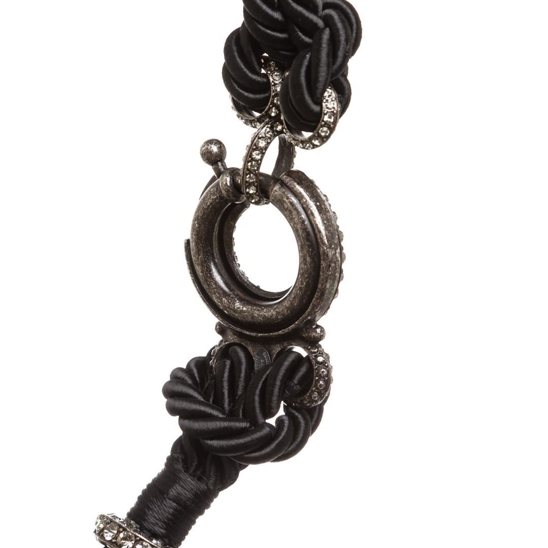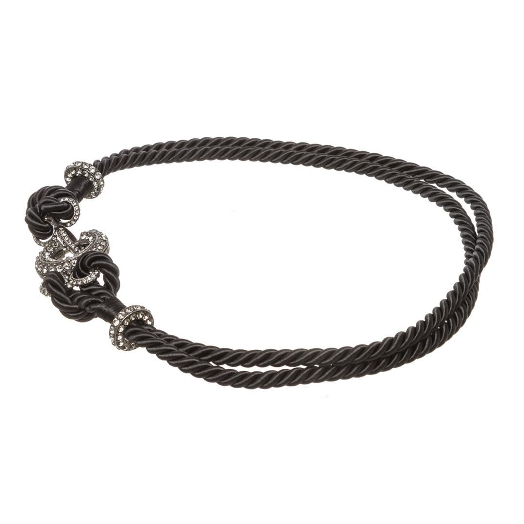 Crafted out of black twisted rope and rhinestone embellish. Dimensions = Length: 27"/68cm. Item is pre-owned.
