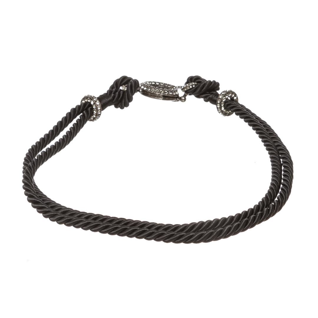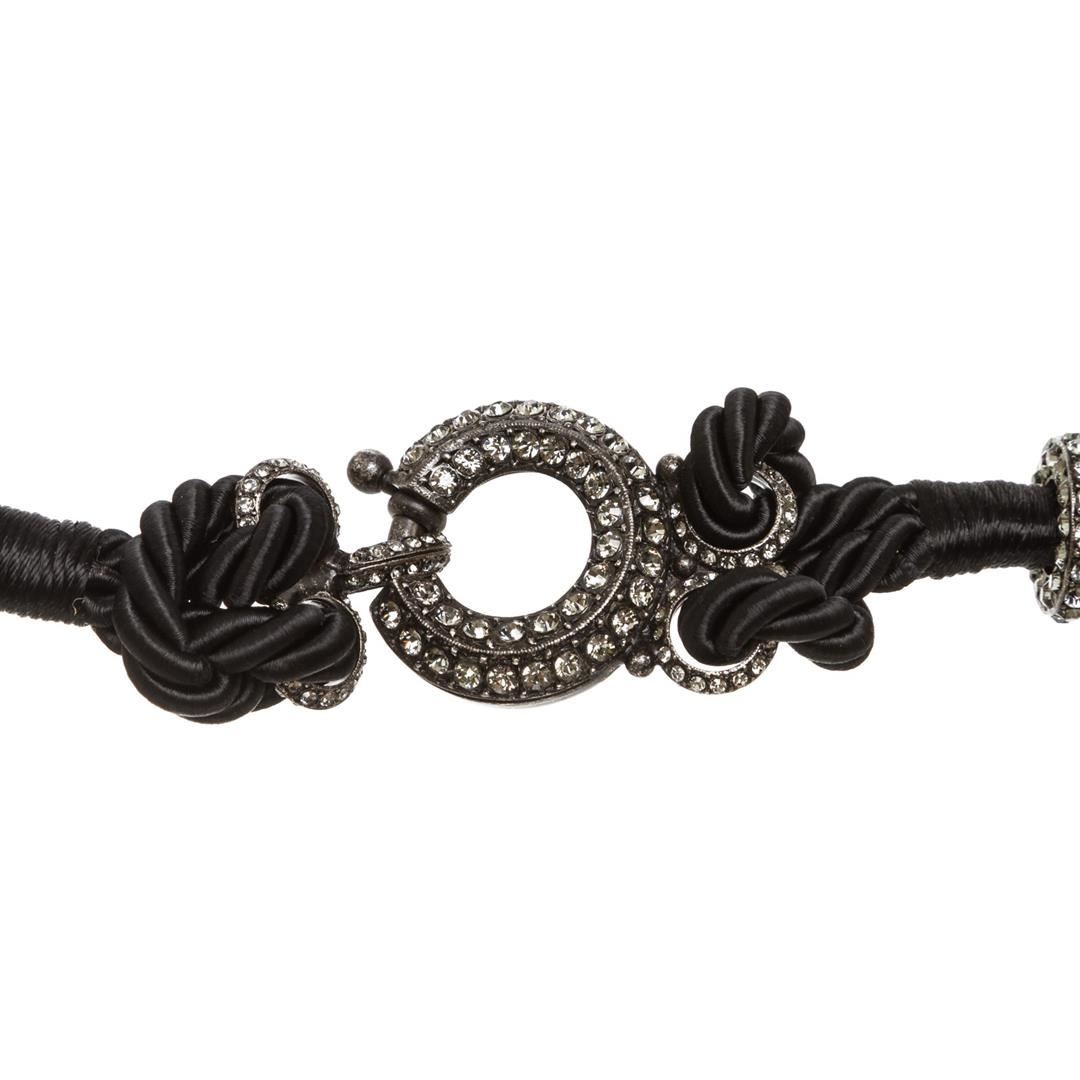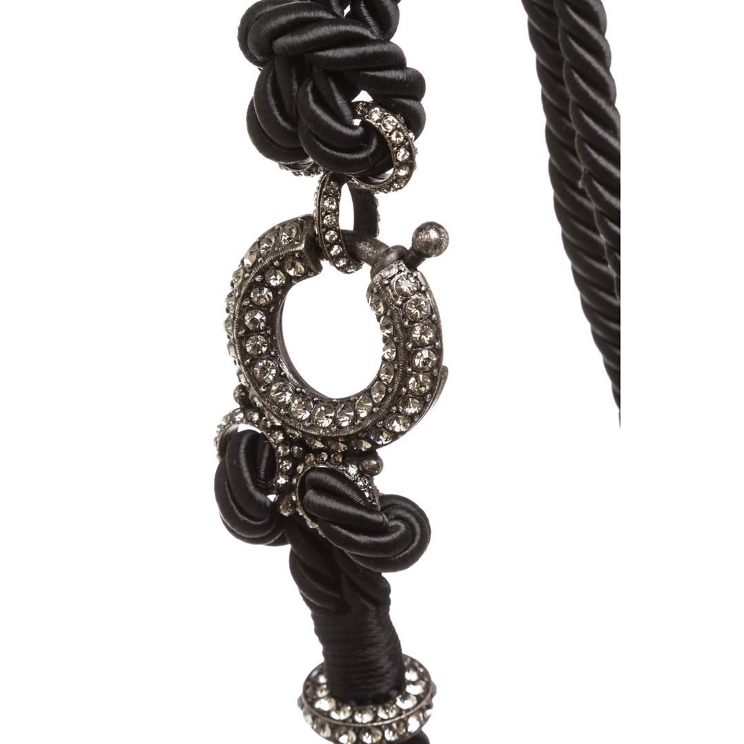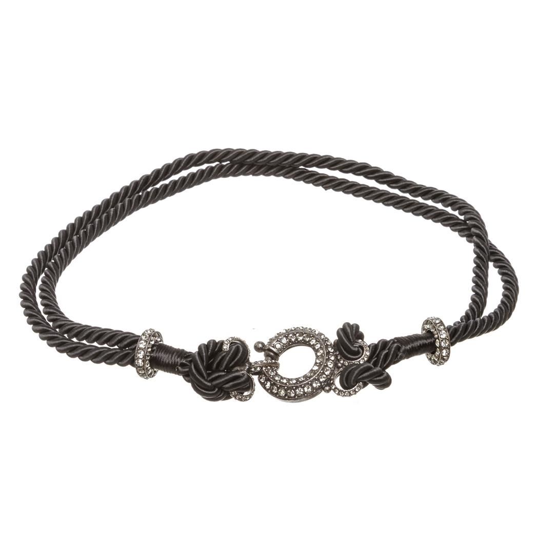 Crafted out of black twisted rope and rhinestone embellish. Dimensions = Length: 27"/68cm. Item is pre-owned.