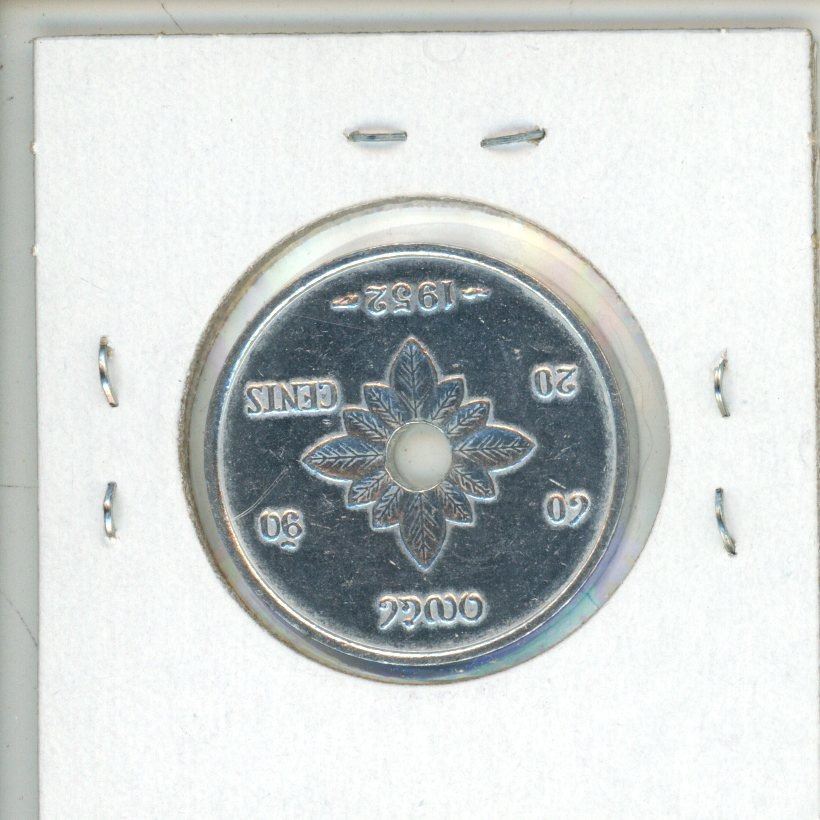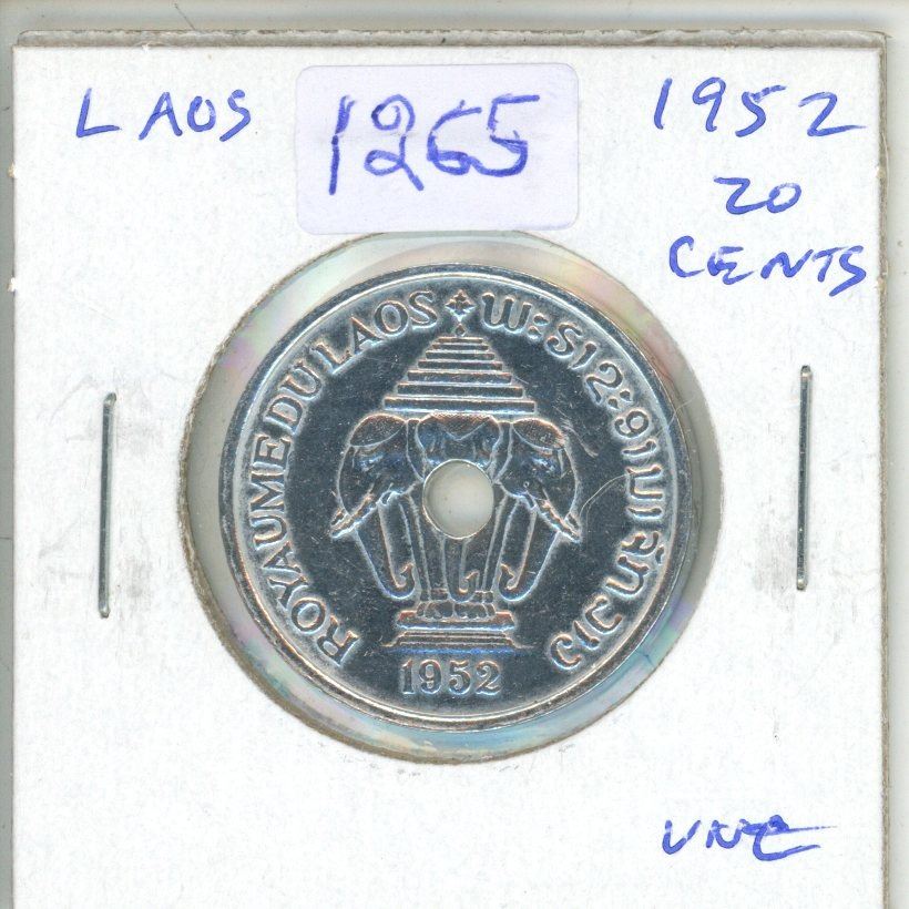 Laos. 1952 20 Centimes. Elephants. Uncirculated.