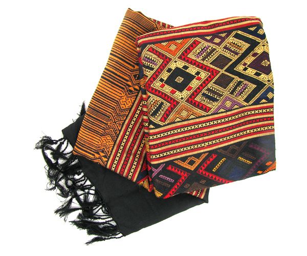 Excellent heavy Lao hand woven raw silk tapestry; 86" x 31"