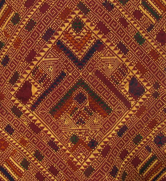 Excellent heavy Lao hand woven raw silk tapestry; 105" x 19"