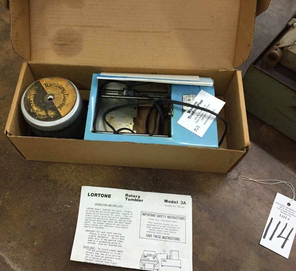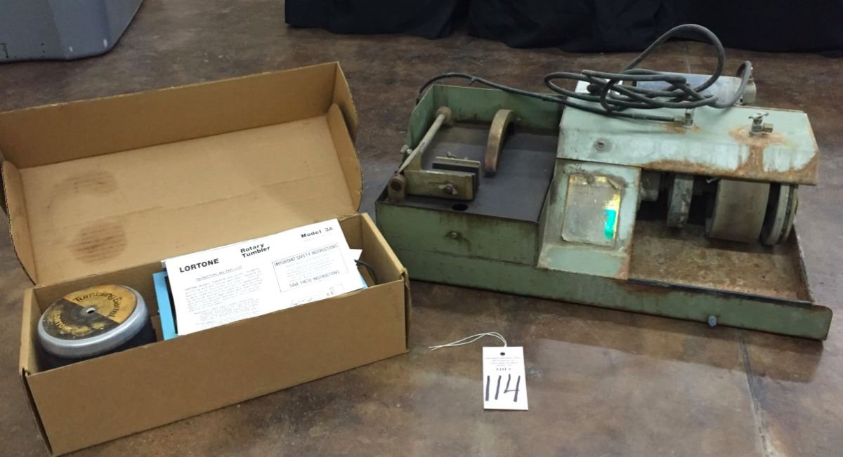 The lapidary saw/buffer is a Lortone brand - model LU– 6X. It seems to be working fine when plugged in. The tumbler is also a Lortone, model 3A. It comes on but gets hot when in use (being sold as parts only). Please look closely at pics - they are an important part of our description. Shipping: There will be a $15 handling / packaging fee for shipping this lot. The actual cost of postage will be added on top of that.