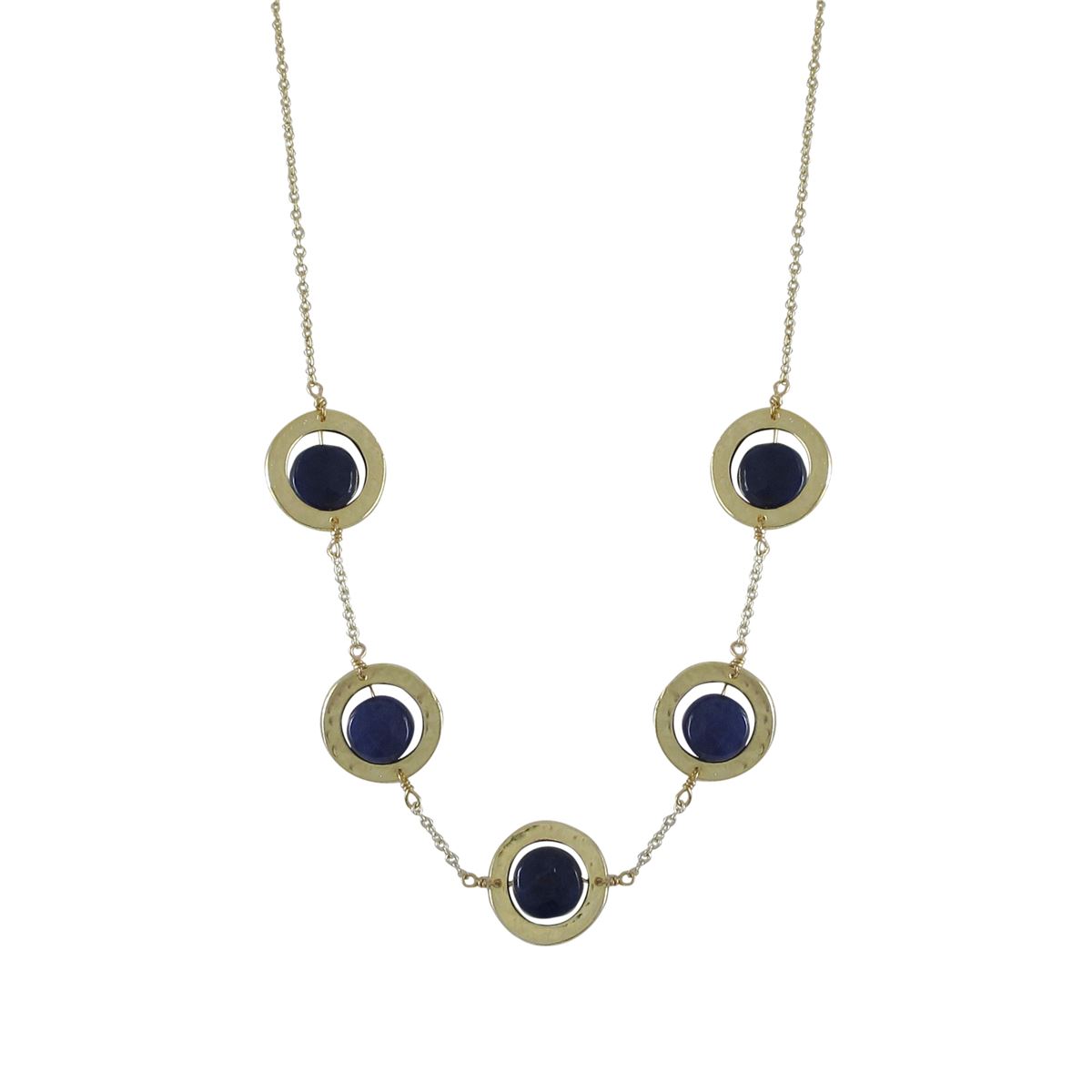 Lapis 10Mm Round Semi Precious Stones In 18Mm Open Rings, Gold Plated Brass Necklace, 18" 2"