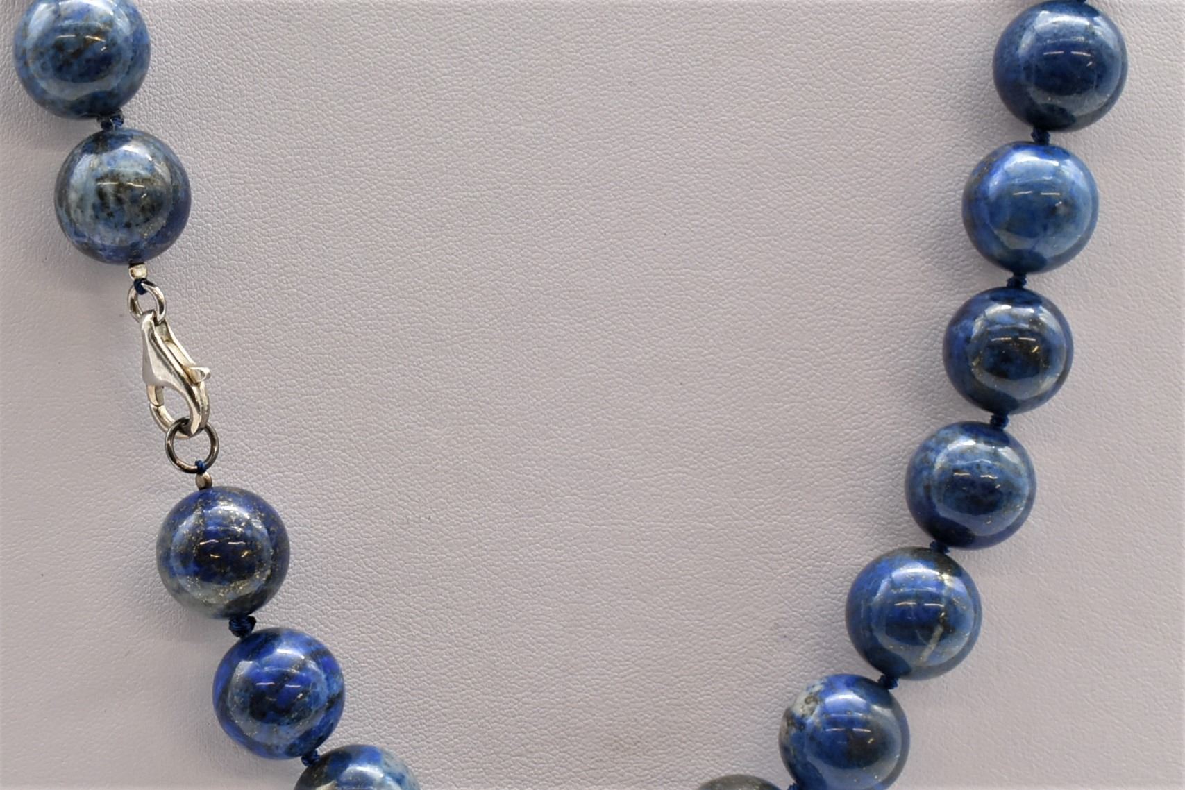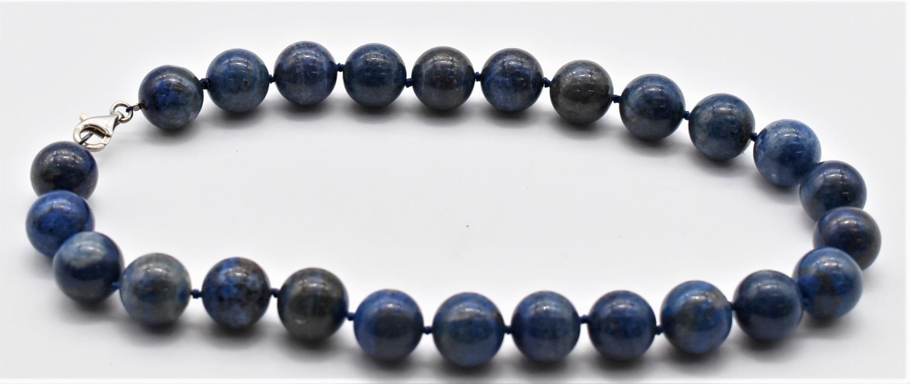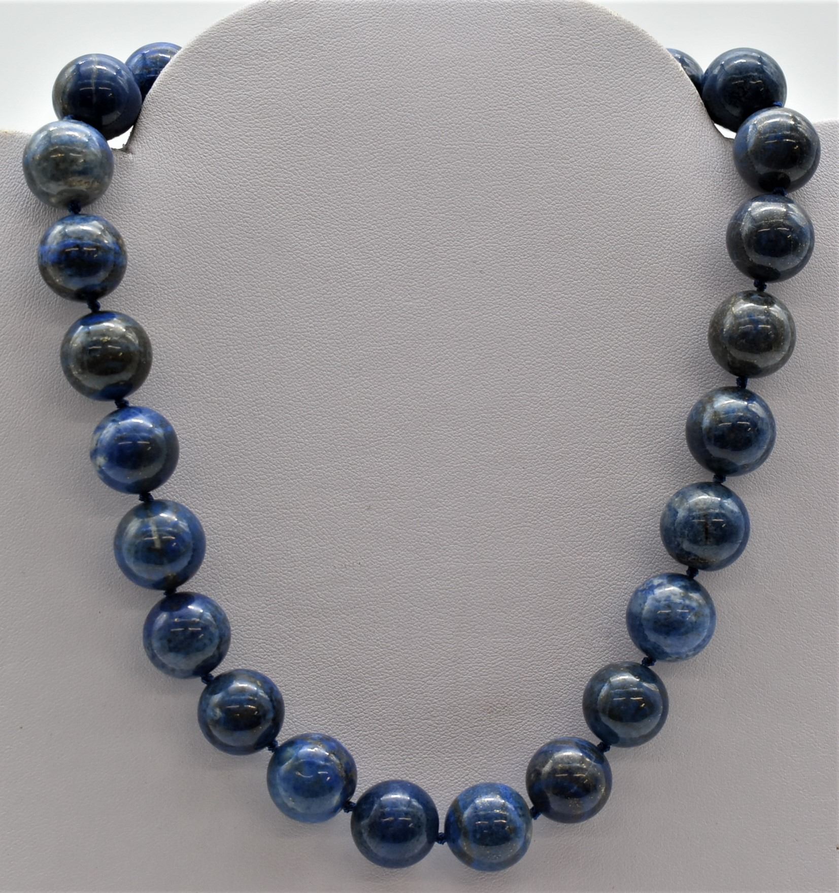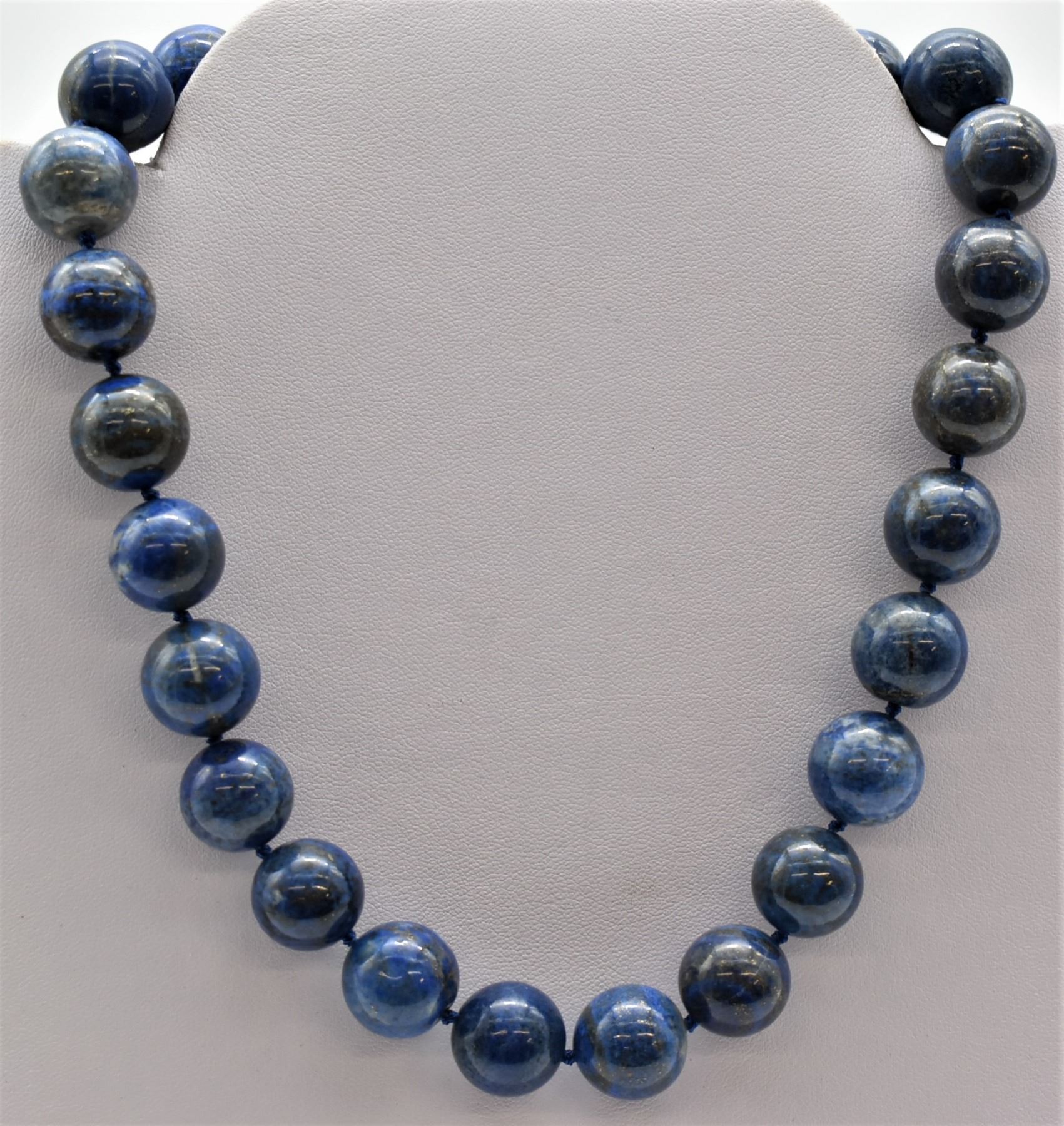 Lapis Lazuli Bead Necklace, measures 16''L end to end, sterling clasp, beads measure 5/8''D, total gram wt. of 167.2
