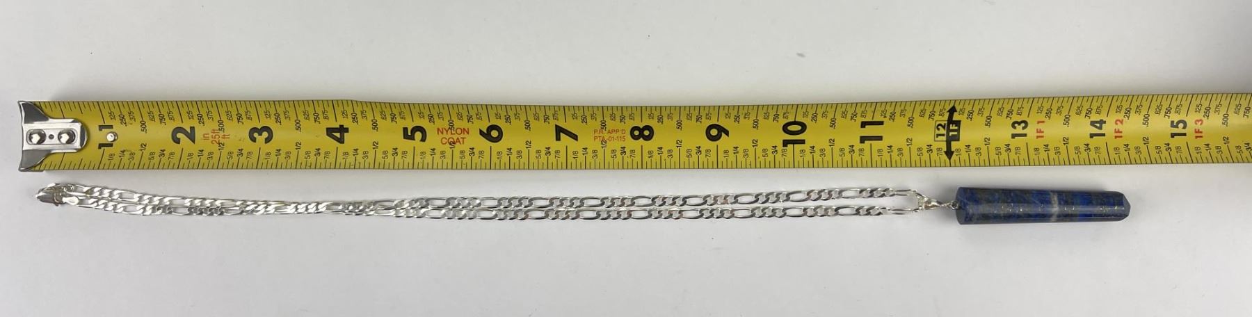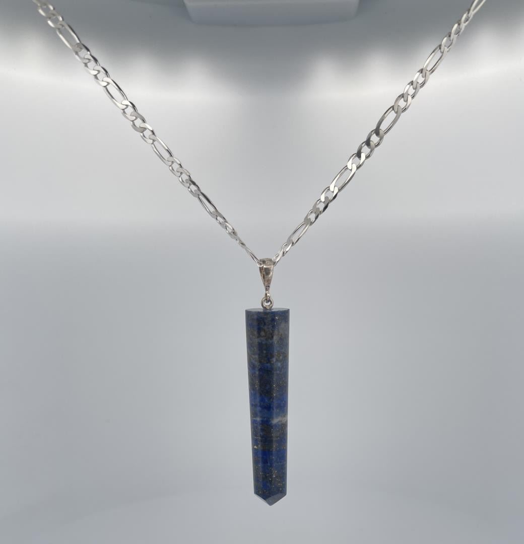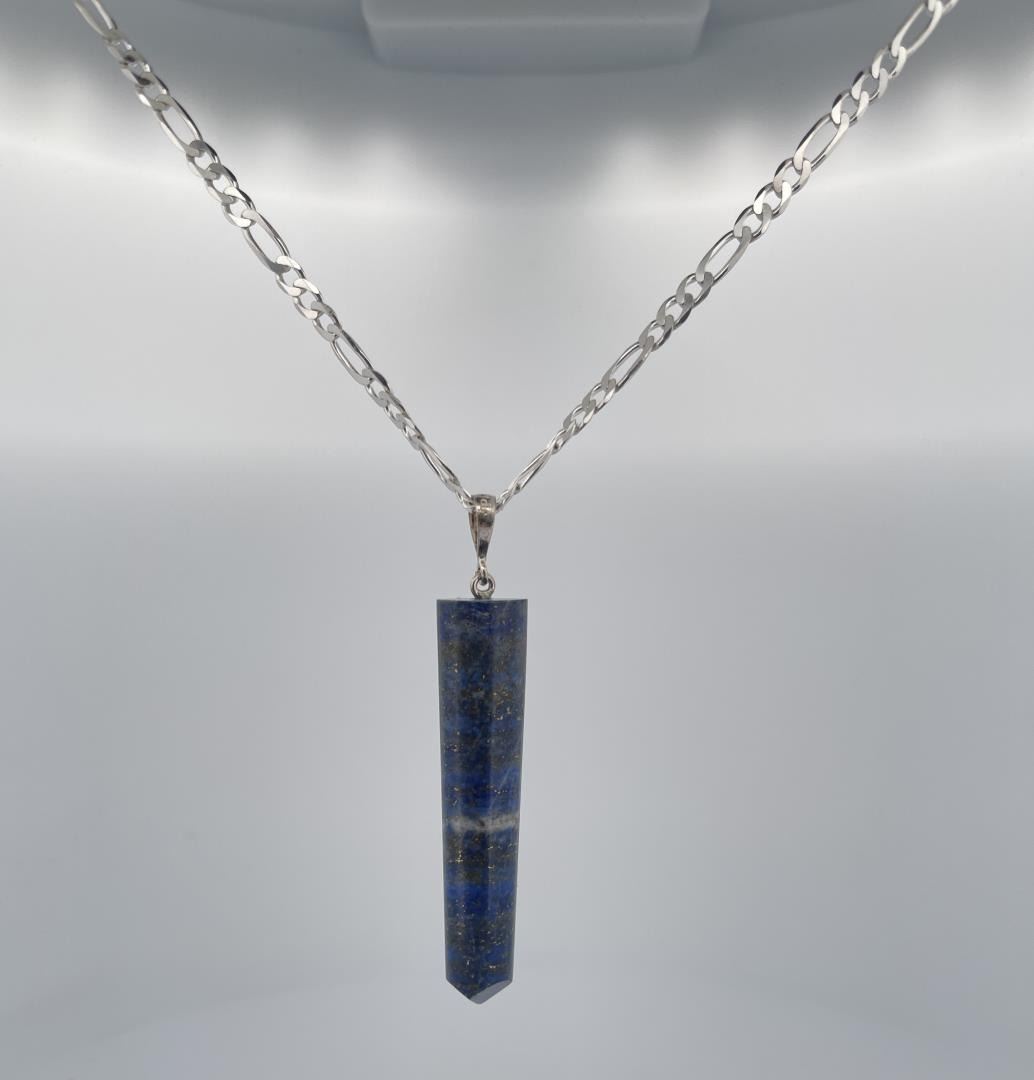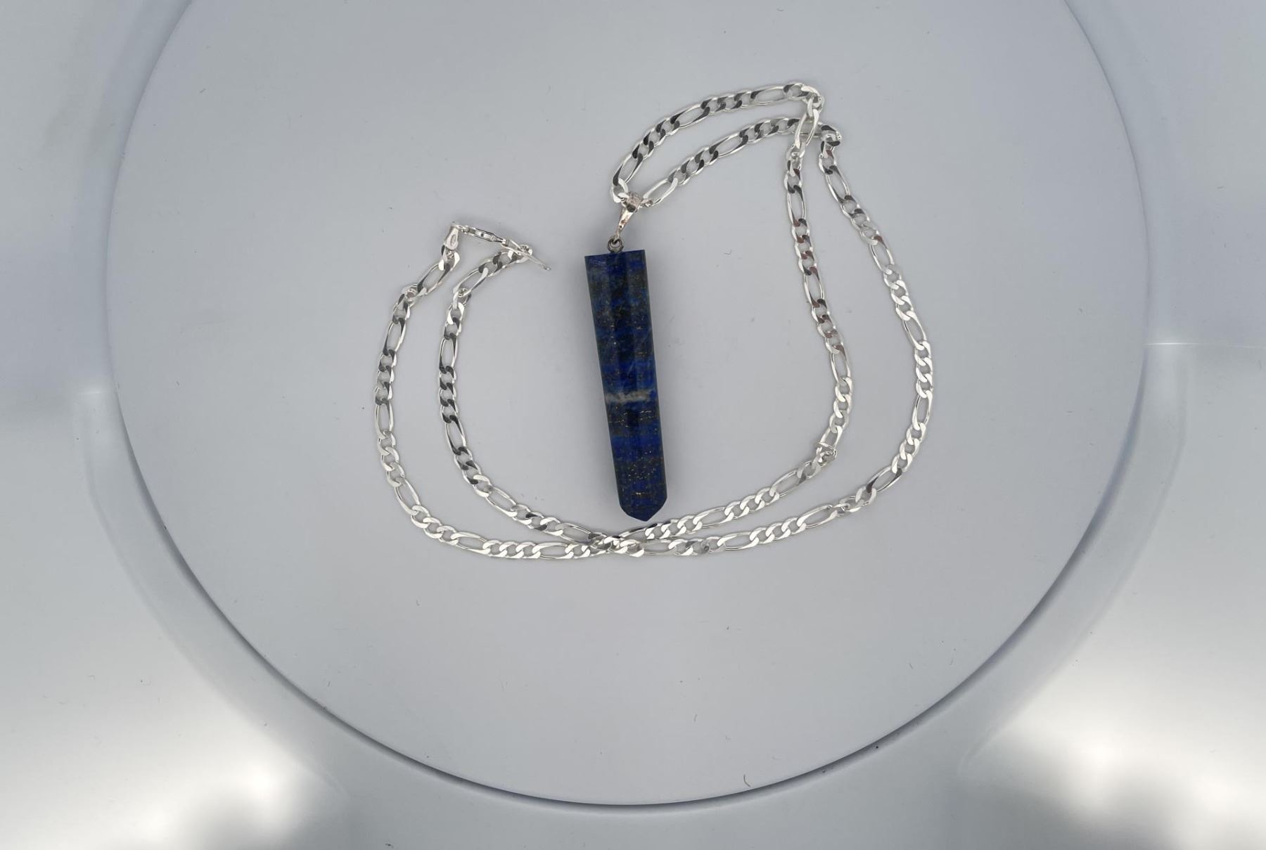 Material is Lapis Lazuli. Set in Sterling Silver, with a Sterling Silver chain.