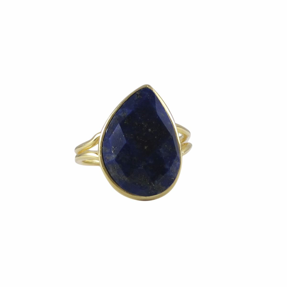 Lapis/ Lazurite Semi Precious Stone Set In Gold Plated Sterling Silver Adjustable Ring, Size 5-9