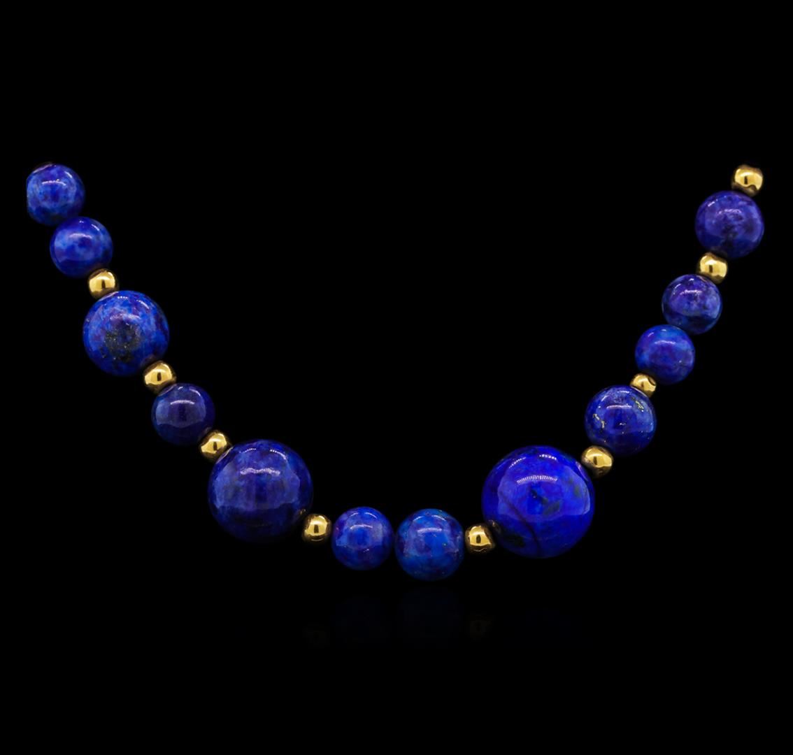 Lapis Necklace - 14KT Yellow Gold. Total Weight: 77.4 grams.