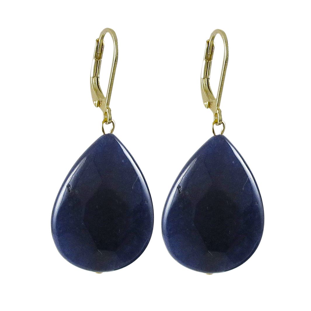 Lapis Semi Precious Stone On Gold Tone Sterling Silver Lever Back Earrings -1.87" (Approximately)