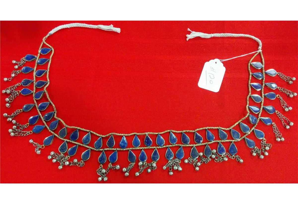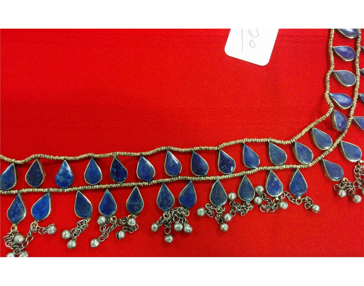 Lapis Tribal Belt from 1960's. This tribal belt was brought back to the United States by a U.S. Soldier. There are minor nicks and scratches. The belt is 30 x 3 inches without strings. Shipping $18.00