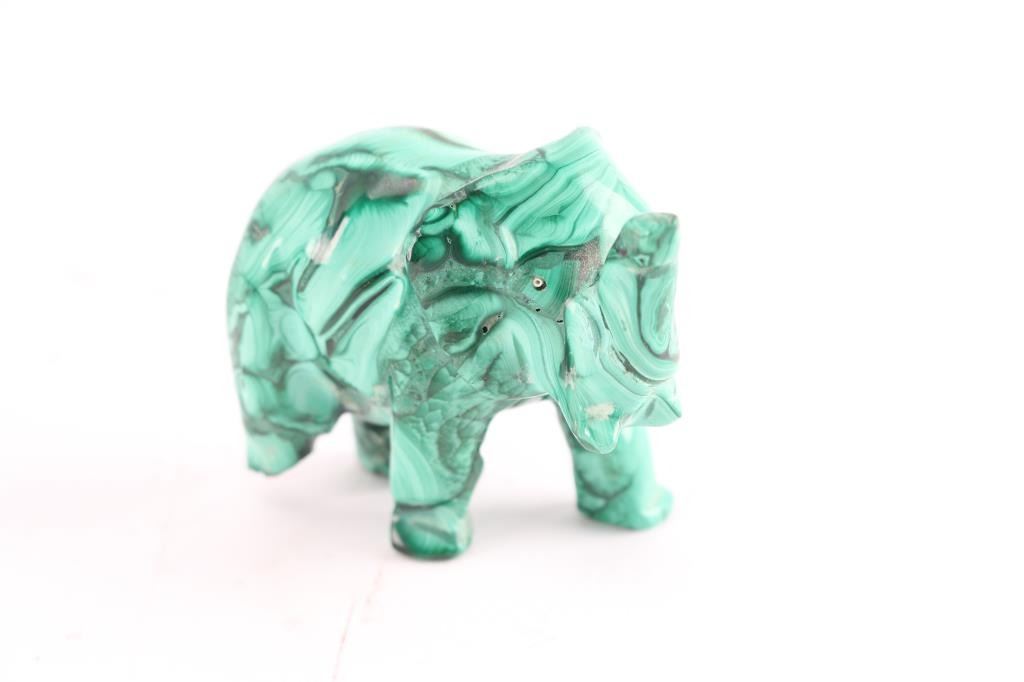 2- Malachite carved figure of African elephant. 2"H.