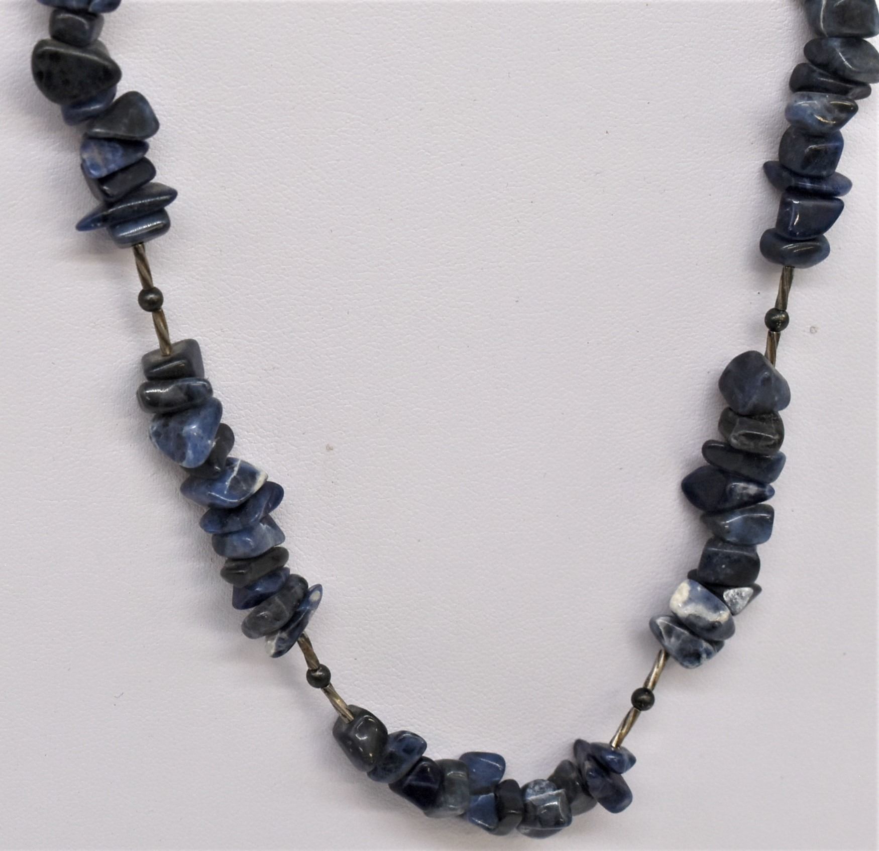 Lapis and Sterling Bead Necklace, measures 20''L end to end, barrel screw closure, string tied