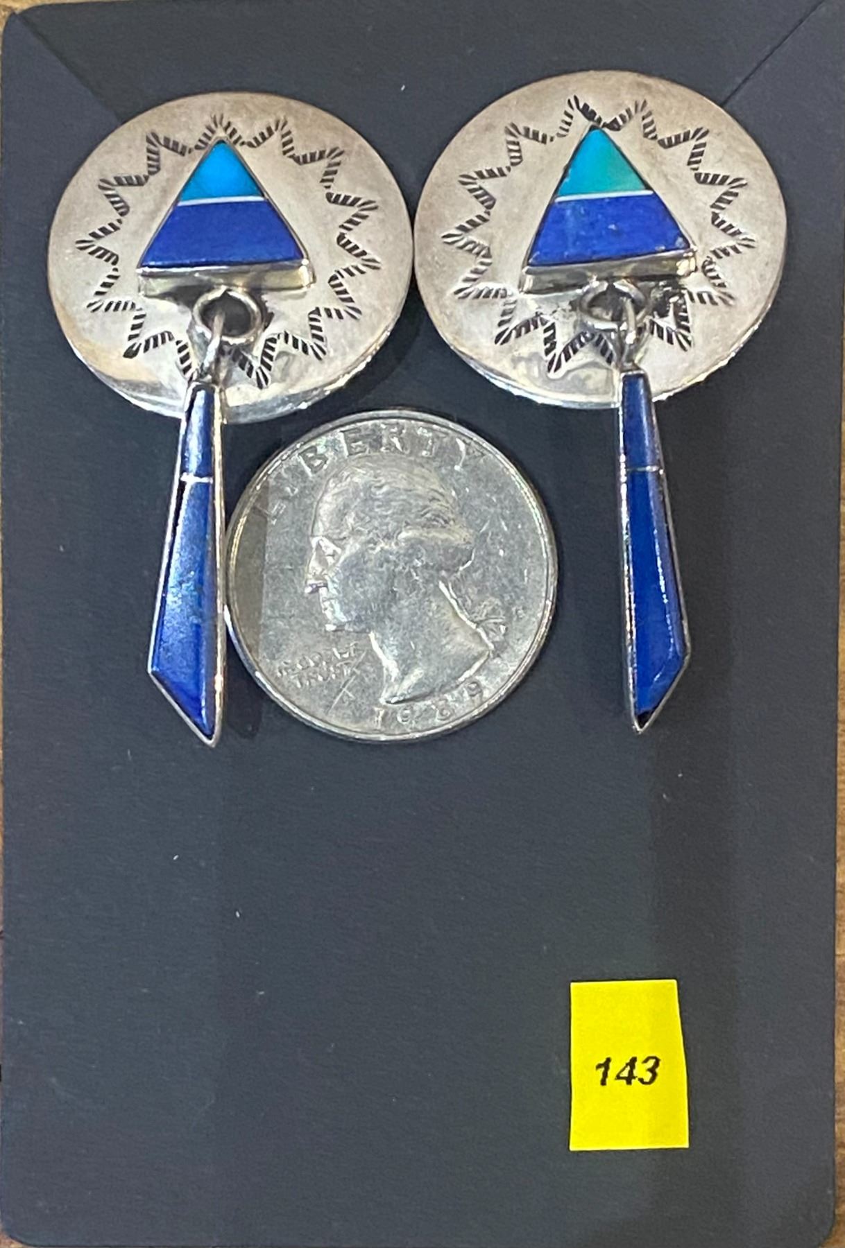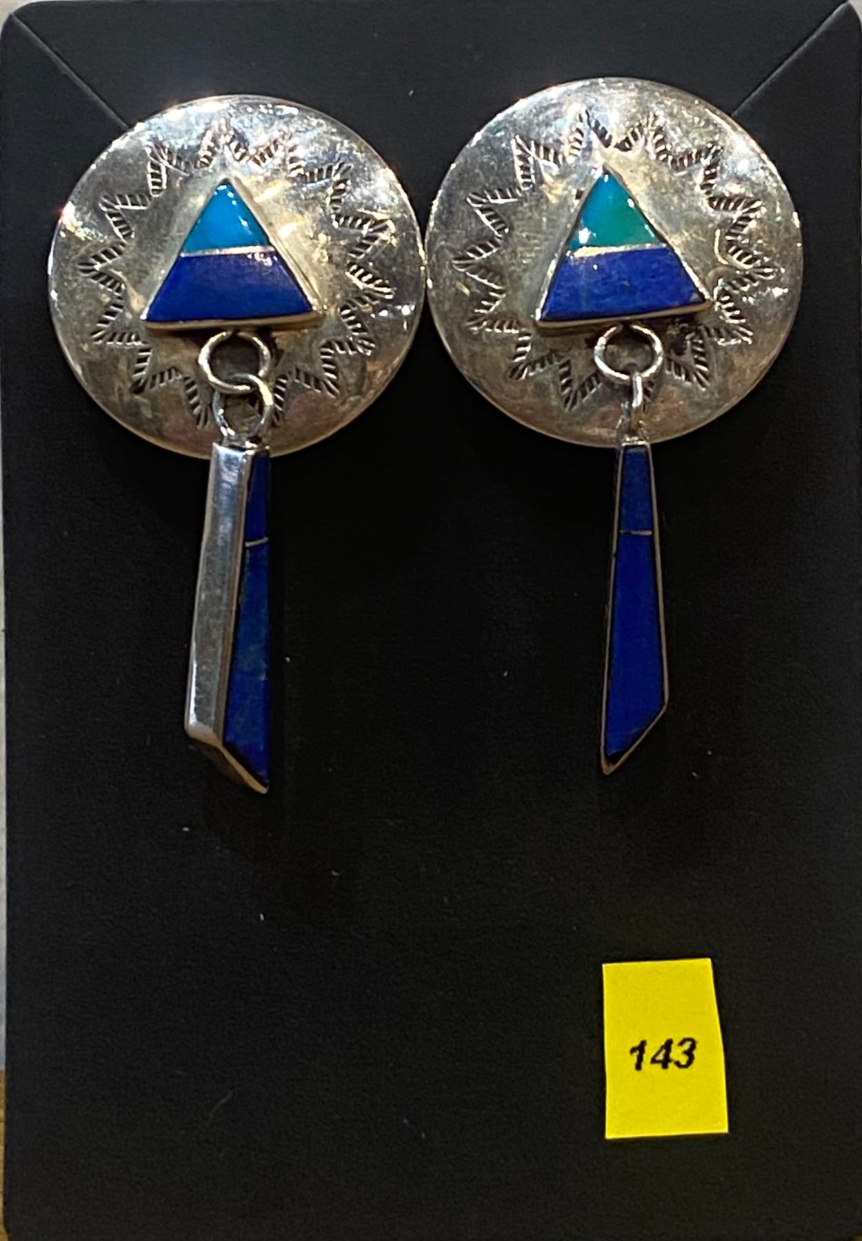 Lapis and Turquoise Clip Earrings with Lapis inlay dangle. 1” round 1 “dangle