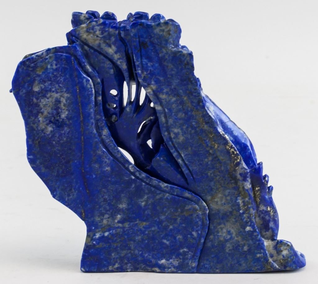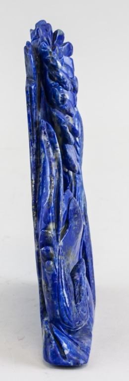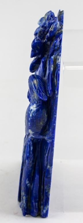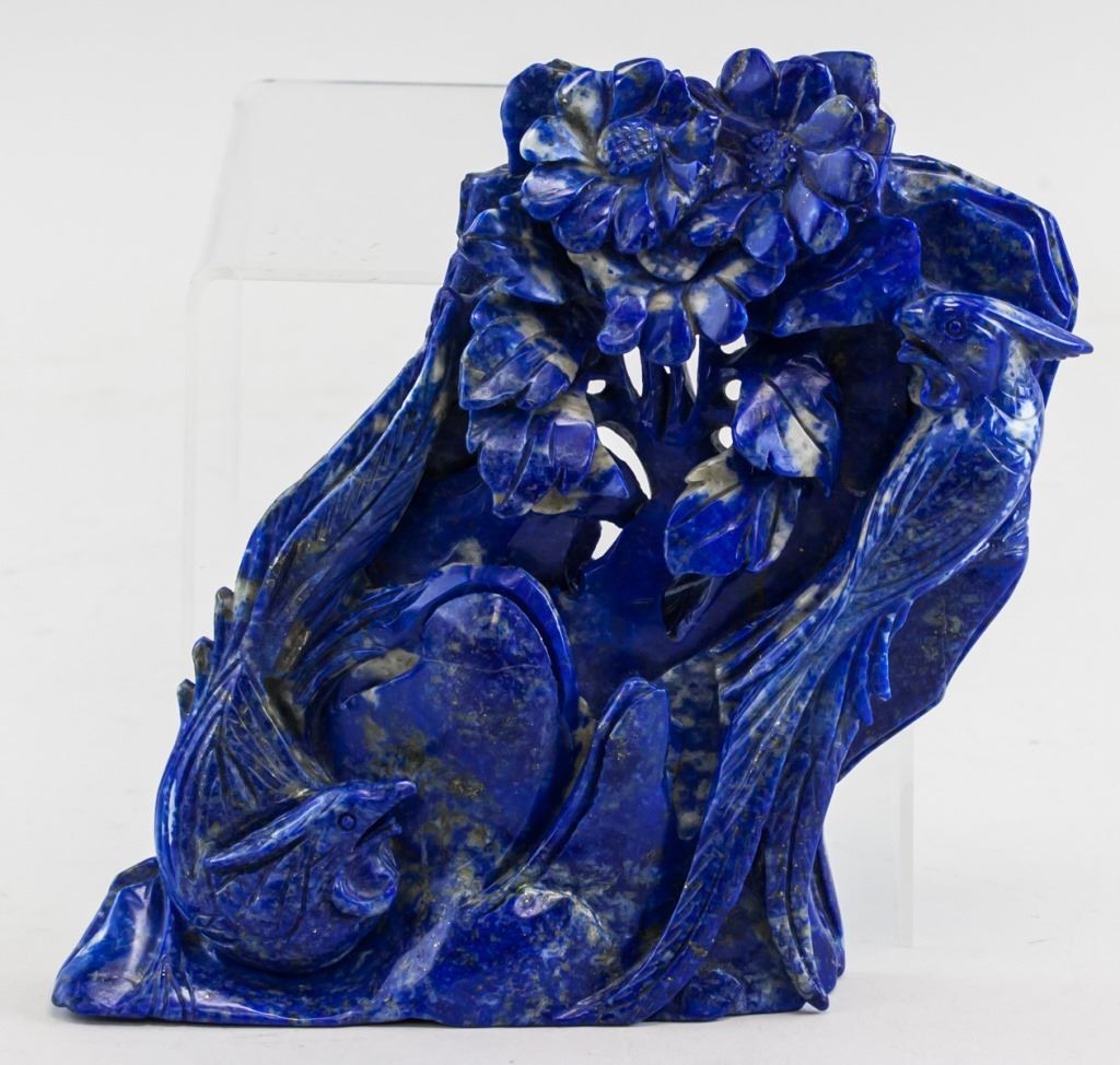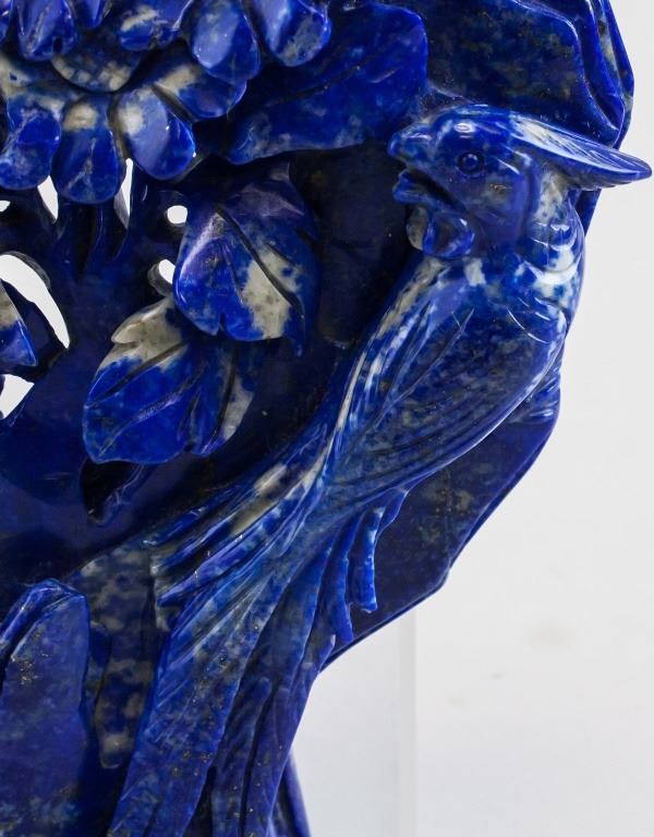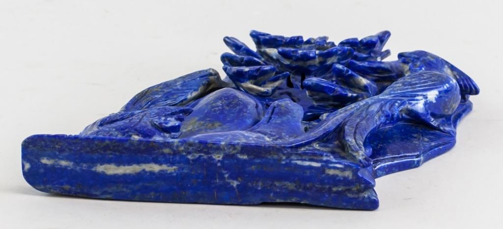 Lapis lazuli carved flowers and birds. Of vivid blue tone. 17 x 17 cm. 856 grams.