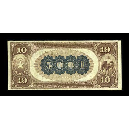 <B>Laredo, TX</B></I> - $10 1882 Brown Back Fr. 487 <B>The Laredo NB</B></I> Ch. # (S)5001<BR>A lovely note which is one of only four Brown Backs known from this border community, one of which is in the Philpott/Moody holdings and unlikely to become available to collectors anytime in the near future. It comes from the Everson collection sale (where it was graded EF-AU), and it has all the quality that a Brown Back from an old time collection would be expected to possess. Nice <B>Very Fine-Extremely Fine,</B></I> with purple signatures.<BR><BR><b>Shipping:</b> Coin/Currency (<a target="_blank" href="http://www.heritageauctions.com/common/shipping.php">view shipping information</a>)