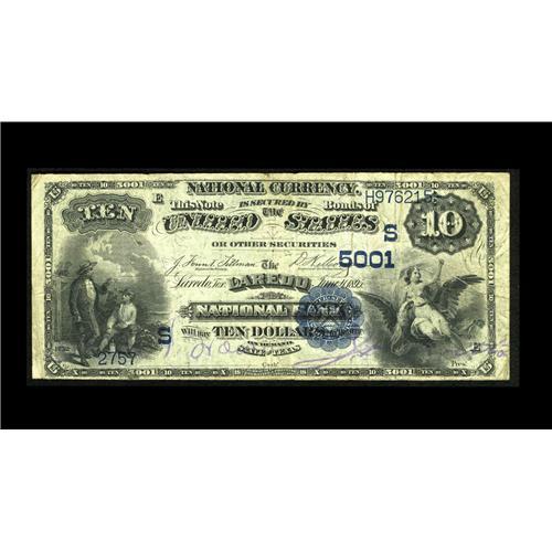 <B>Laredo, TX</B></I> - $10 1882 Date Back Fr. 542 <B>The Laredo NB</B></I> Ch. # (S)5001<BR>This <B>Fine</B></I> example is one of only six $10 1882 Date Backs listed in the census from here and is quite nicely margined. Only 156 $10 1882 Date Backs are known for the entire state, so the appearance of this type and denomination from any institution domiciled with its borders is an event. Based on its scarcity and nice appearance we anticipate bids in the range of no less than...