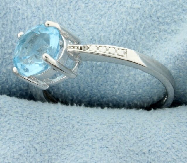 This round stone and diamonds are set in platinum over sterling silver. Size 7 1/2 2.2g