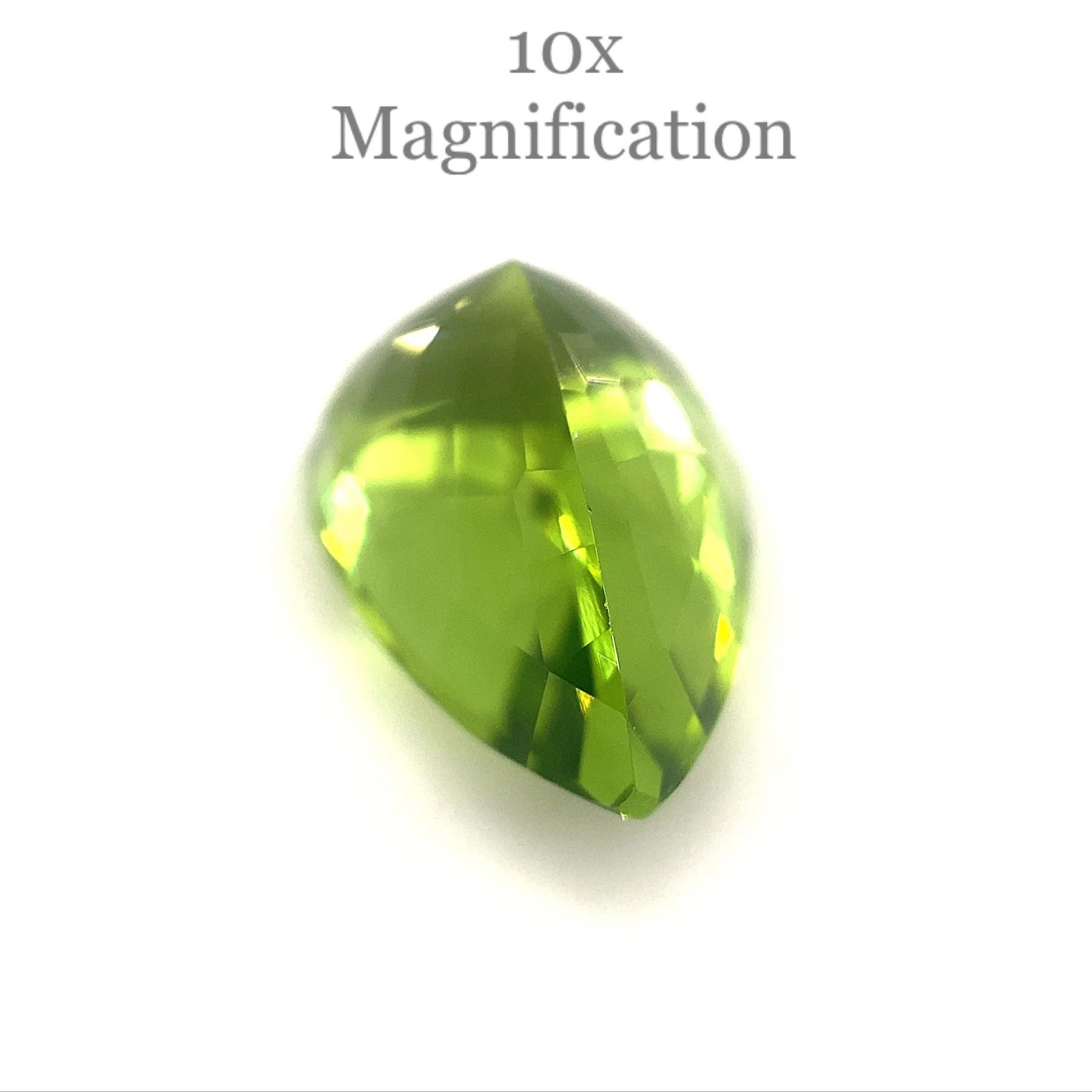 This VVS1 10.17 Ct Yellowish Green Peridot measures 16.54 x 11.01 x 8.60 mm with a brilliant pear cut. The hue and dark tone on this peridot is absolutely stunning. Origin: Burma/ Myanmar. Treatment: None. Please see the certification for additional information.