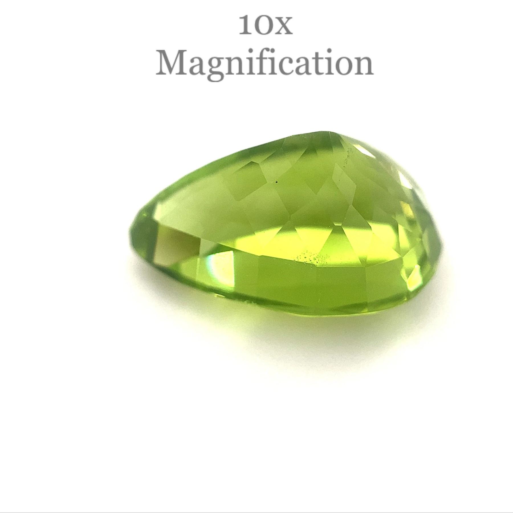 This VVS1 10.17 Ct Yellowish Green Peridot measures 16.54 x 11.01 x 8.60 mm with a brilliant pear cut. The hue and dark tone on this peridot is absolutely stunning. Origin: Burma/ Myanmar. Treatment: None. Please see the certification for additional information.