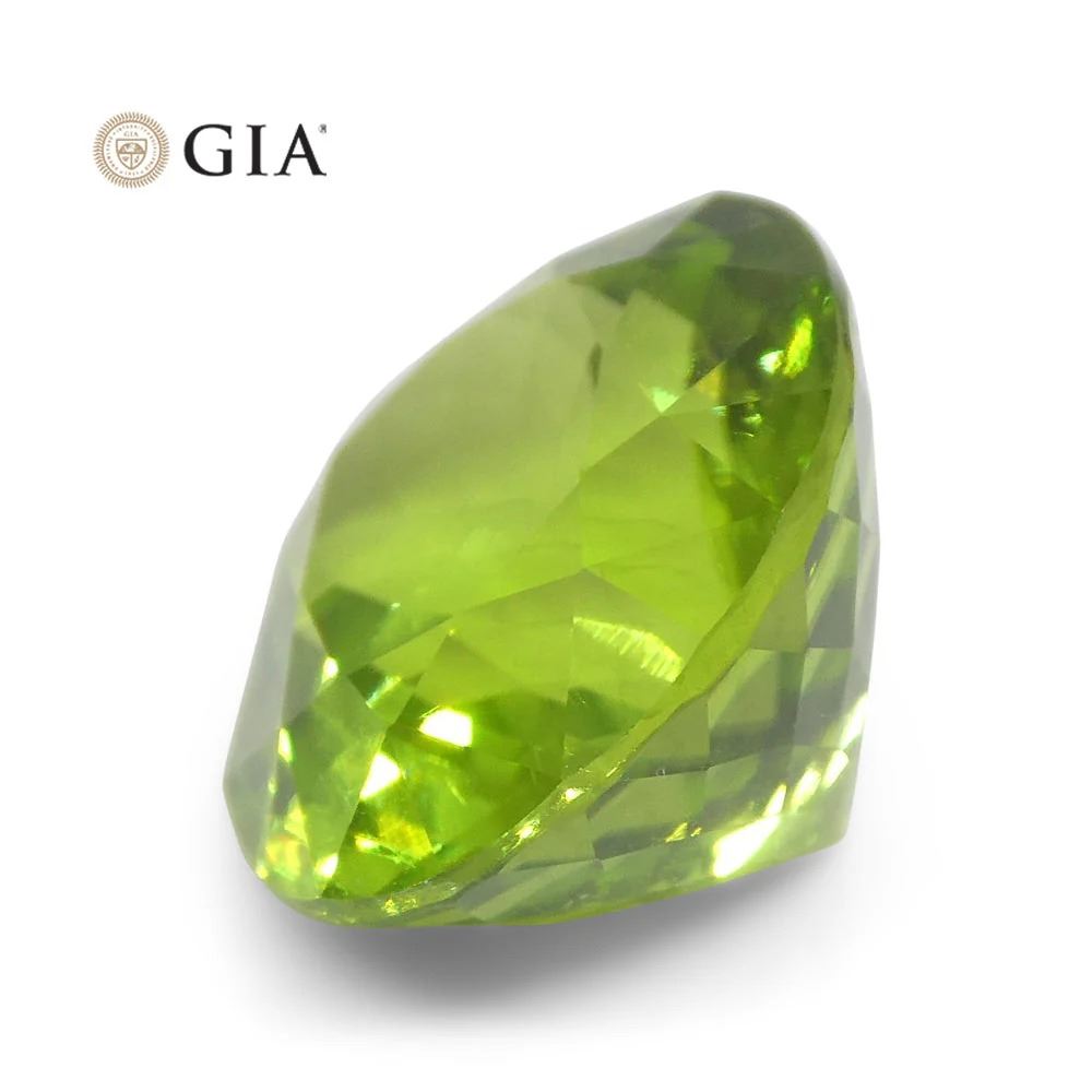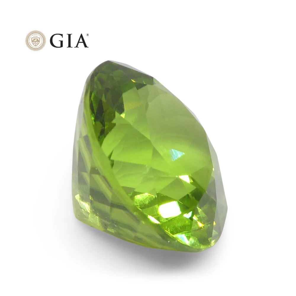 Beautiful VVS1 Eye Clean 10.47 Ct Yellowish Green Peridot is an oval brilliant cut measuring 14.06 x 12.66 x 8.94 mm. Showcases a stunning, vivid hue. Do not miss this one! Treatment: None. Please see the certification for additional information.