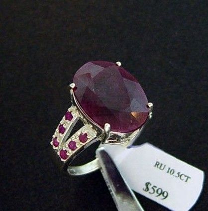 Large 10.5 ct. Genuine Ruby and Diamond Ring in Sterling Silver - Size 7.5