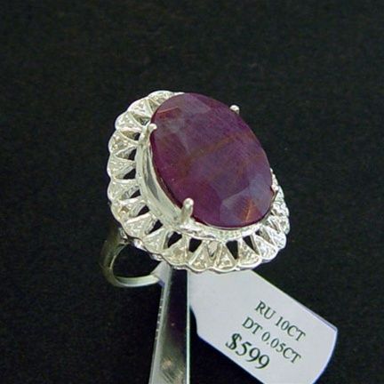 Large 10 ct. Genuine Ruby and Diamond Ring in Sterling Silver - Size 7.5