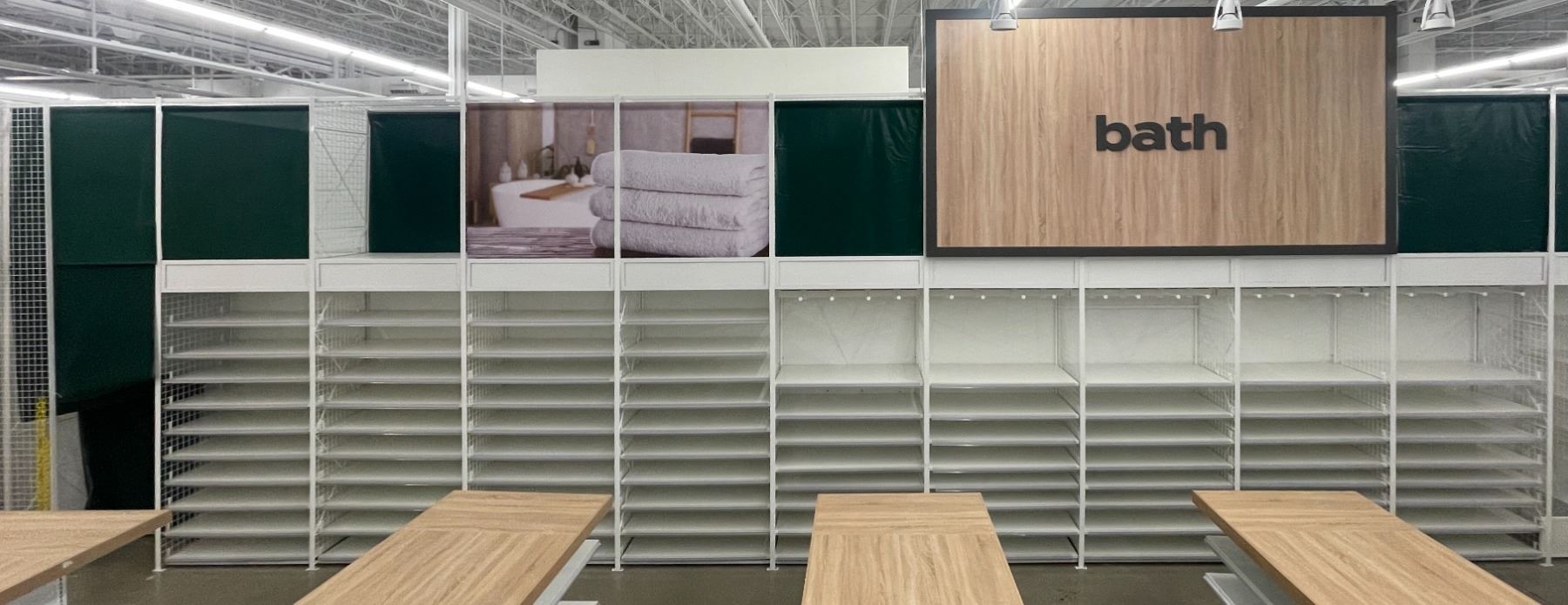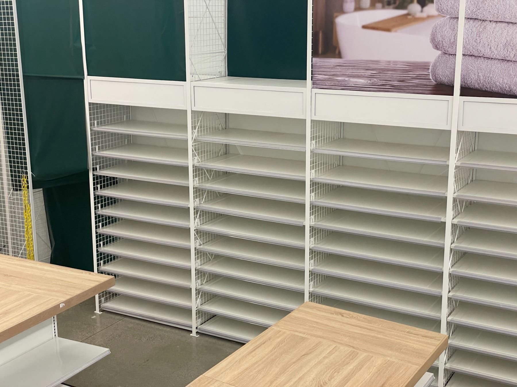 Large 10 rows of 8 & 10 tier retail shelves (approx. 41ft W 148in H 26in D - excellent condition) BIDDERS ARE RESPONSIBLE FOR ALL COSTS ASSOCIATED WITH PICKUP OF THEIR LOTS INCLUDING BUT NOT LIMITED TO RENTAL OF EQUIPMENT, FORKLIFTS, LABOUR, TRUCKING, TOOLS ETC.