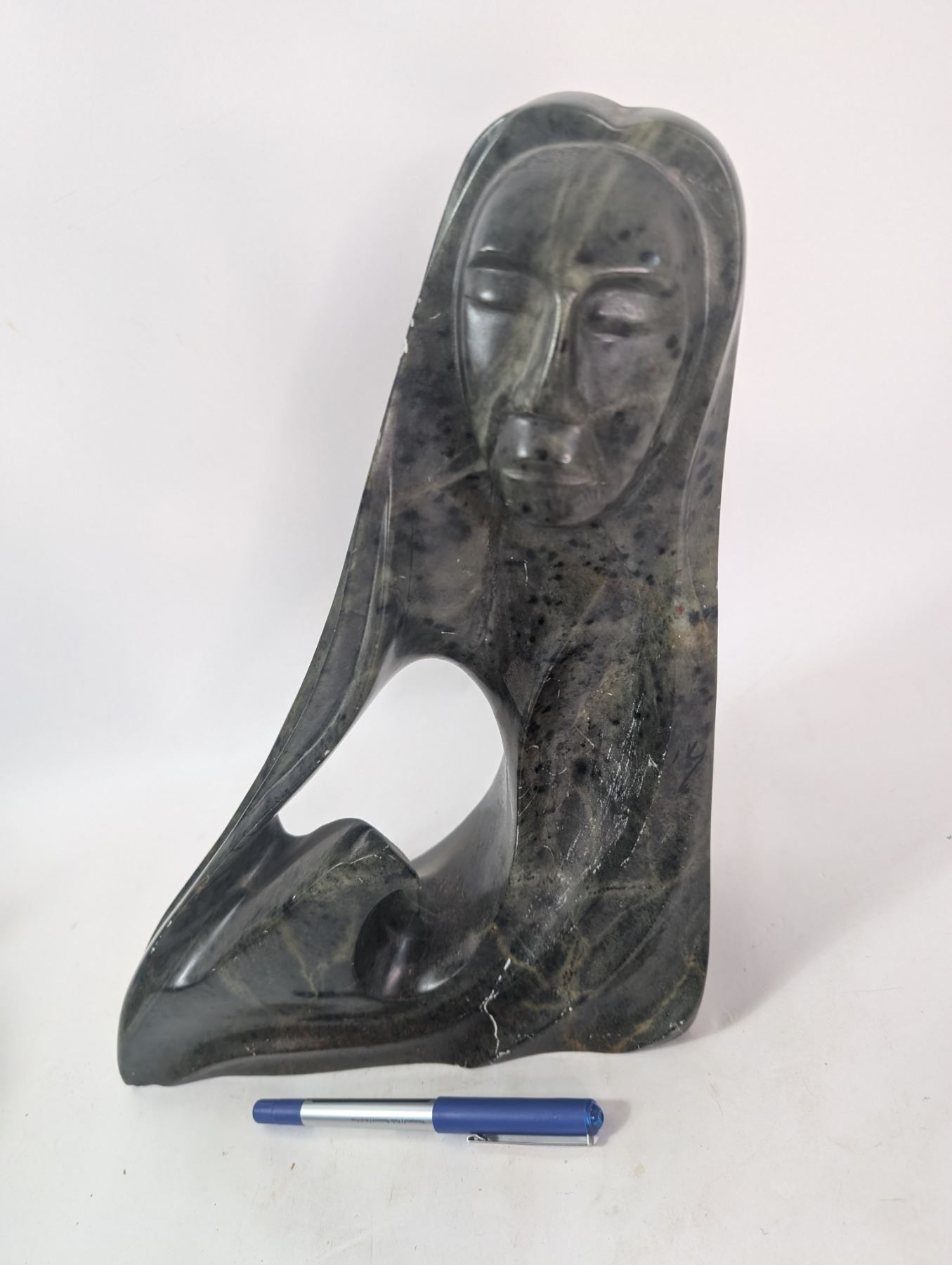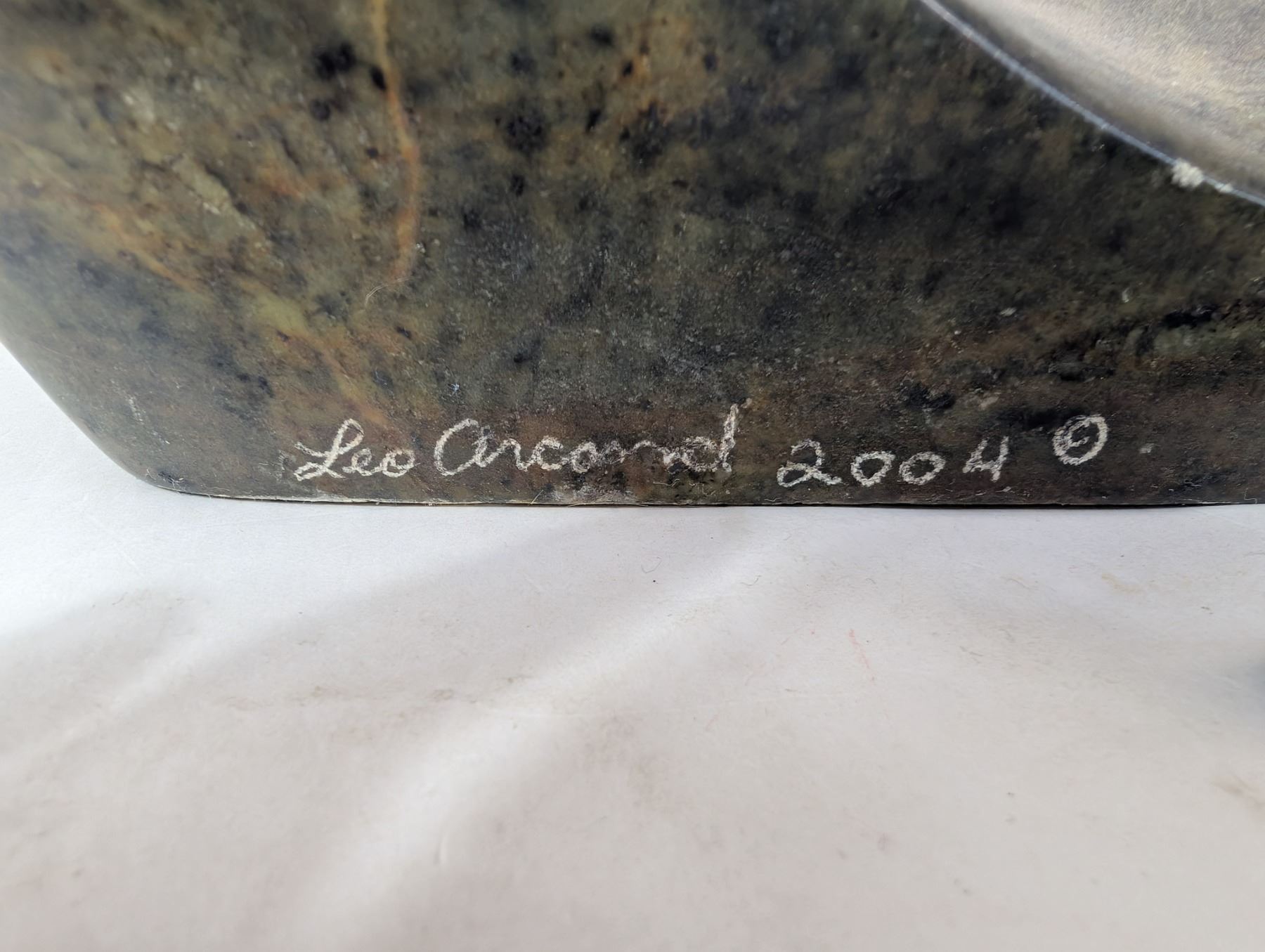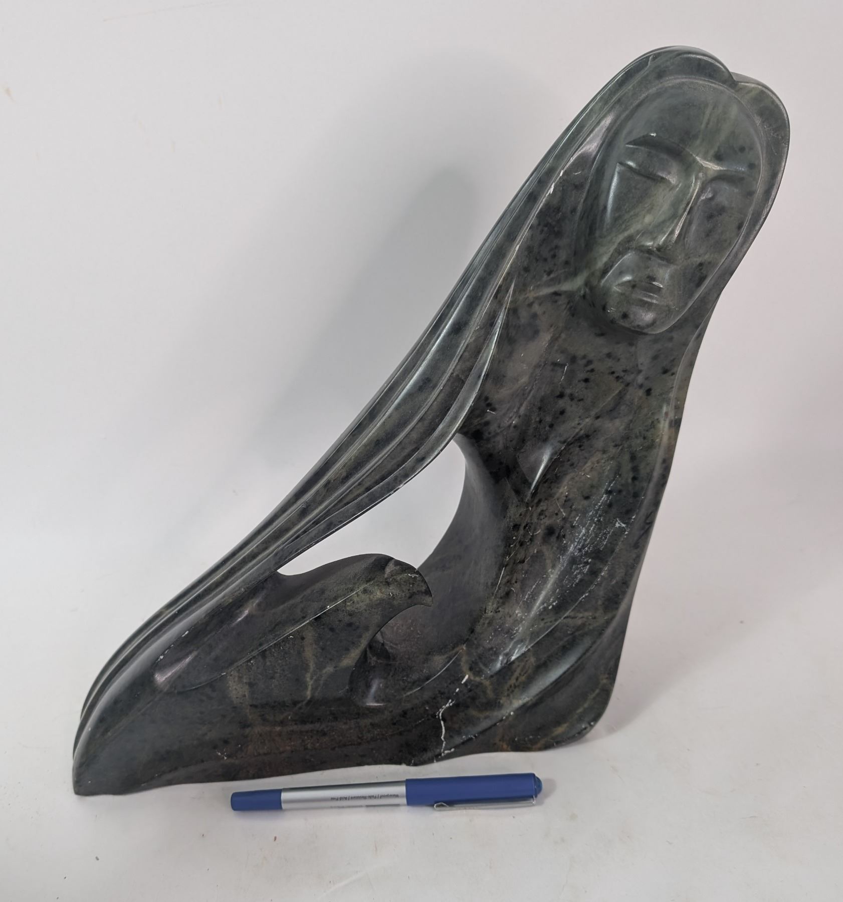 Large 14" Plus Canadian Aboriginal Soapstone Carving by Leo Arcand