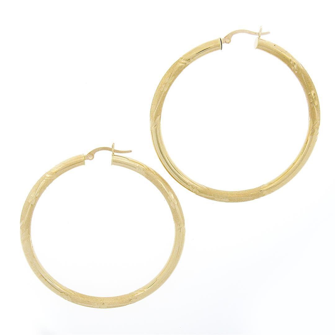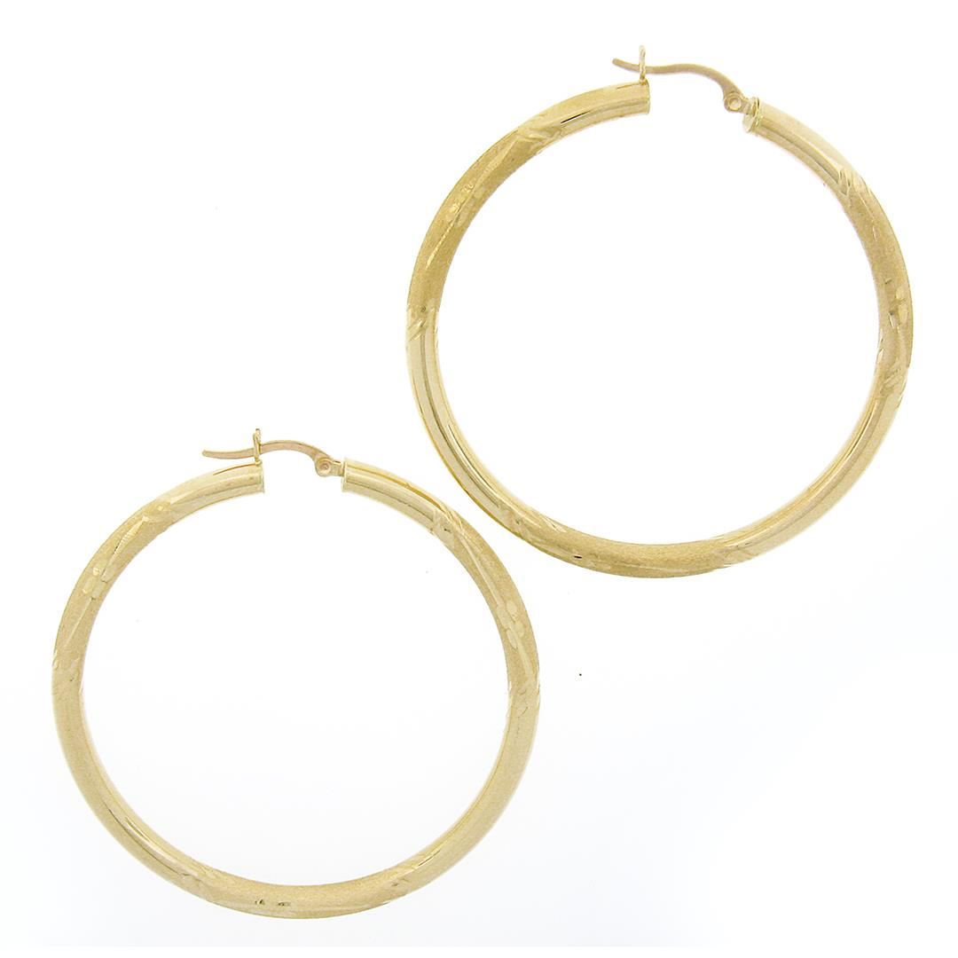 A solid 14k yellow gold large hoop earrings. The earrings measure approximately 57.20x54.8mm and weigh a total of 7.68 grams.