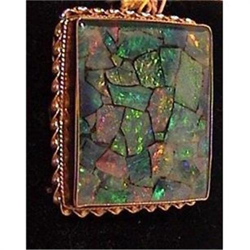 <tr><td>Title:Large 14K Gold Setting Mosaic Opal Pin Pendant</td></tr>