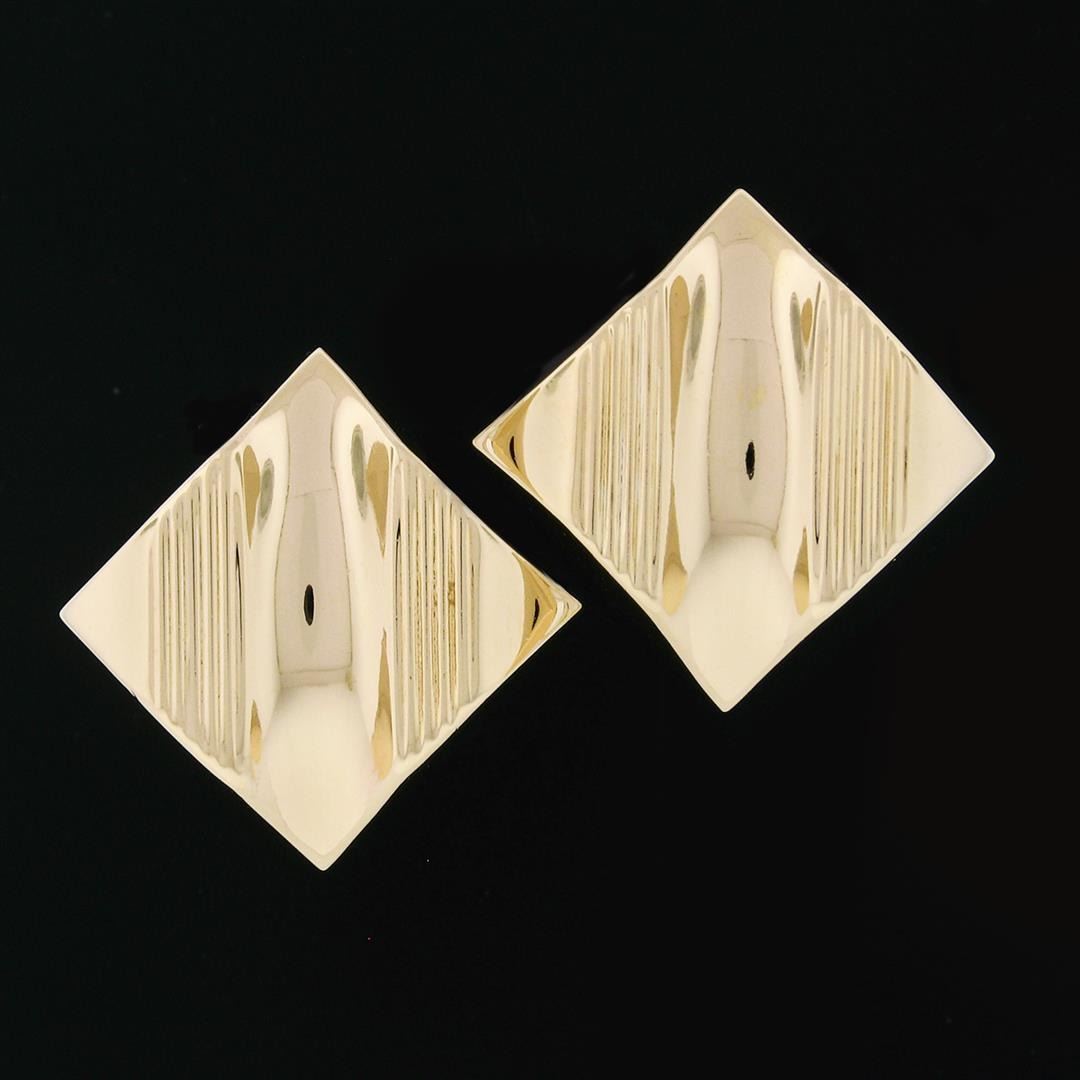 An estate solid 14k yellow gold geometric button Earrings.The earrings measure approximately 20.30mm and weigh a total of 9.47 grams.