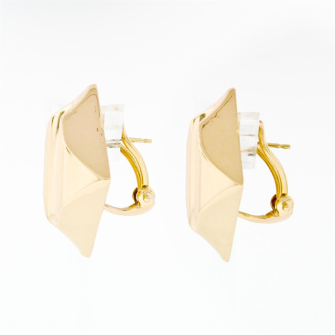 An estate solid 14k yellow gold geometric button Earrings.The earrings measure approximately 20.30mm and weigh a total of 9.47 grams.