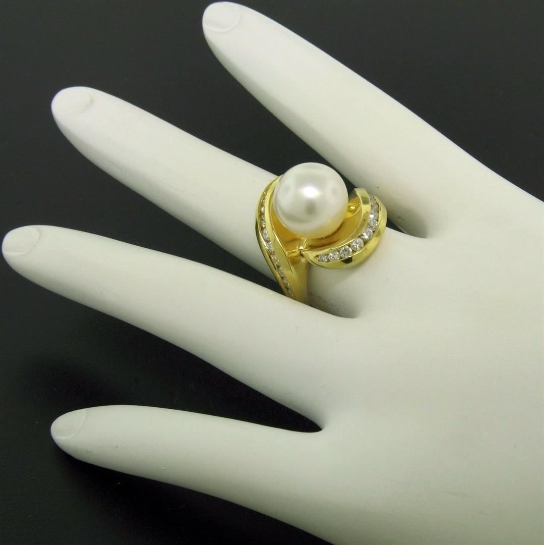 One Large 18k Yellow Gold 10.6mm Round White Pearl Solitaire & Diamond Cocktail Ring. Item Details: Material: 18K Solid Yellow Gold, Weight: 12.2 Grams, Stone(s): (1) Natural Genuine South Sea Pearl - Pure White Color - 10.60mm, (26) Natural Genuine Diamonds - Round Brilliant Cut - Channel Set - F Color - VS1 Clarity - 1.00ctw (approx.), Total Carat Weight: 1.00 (approx.), Ring Size: 7.0, Ring Width: 20.74mm, Ring Height: 12.25mm rise off the finger Condition: Estate - Like New Ready to Wear!
