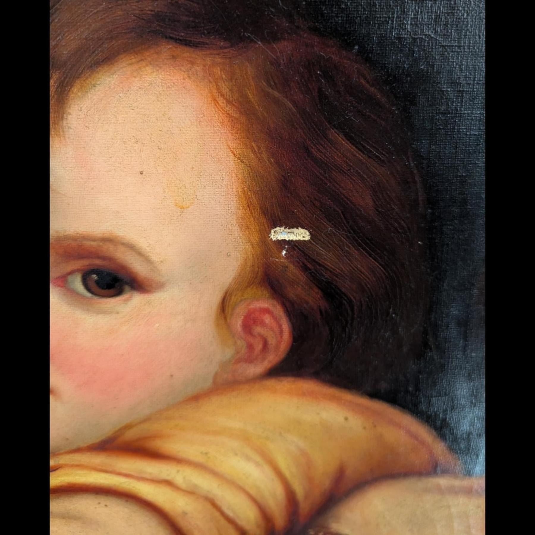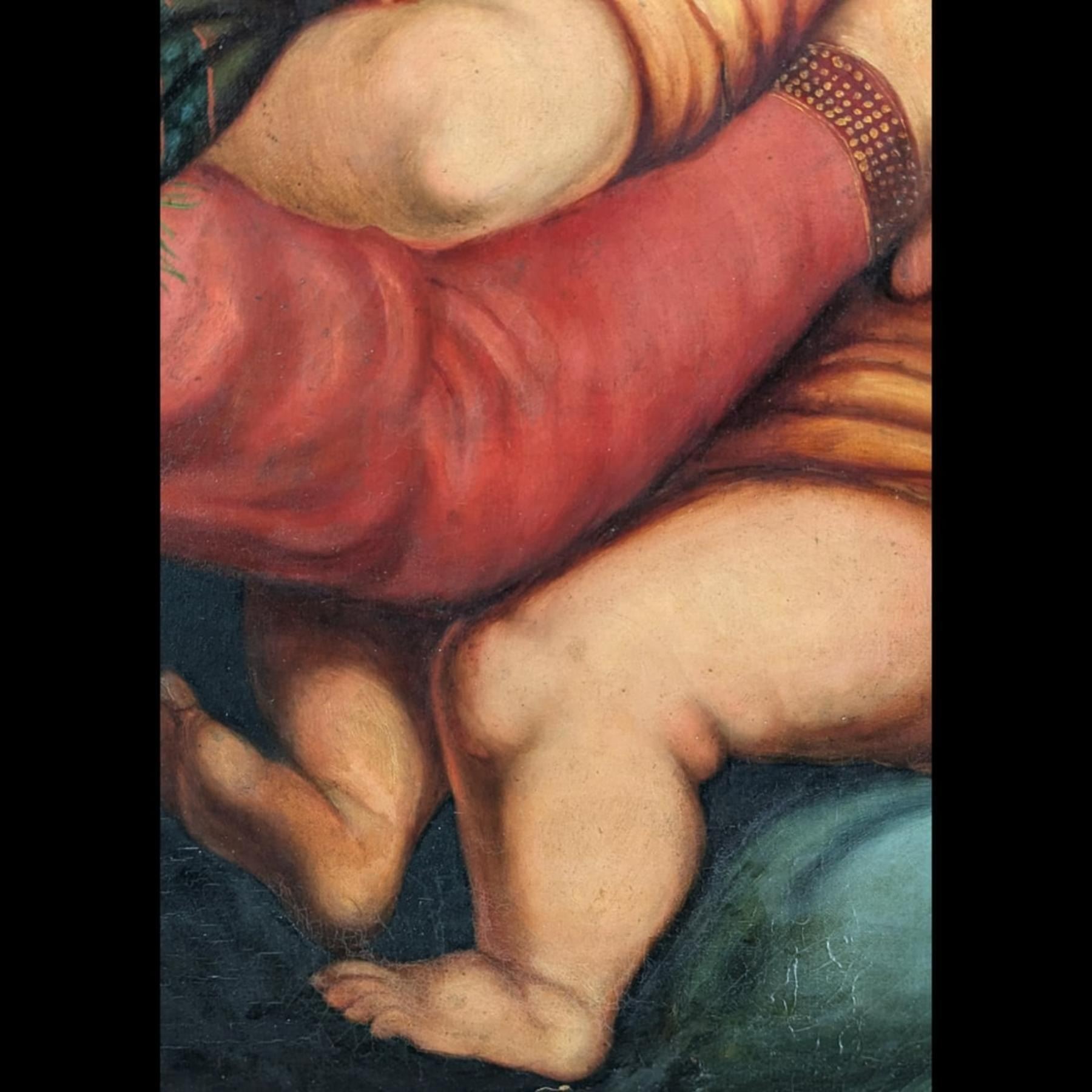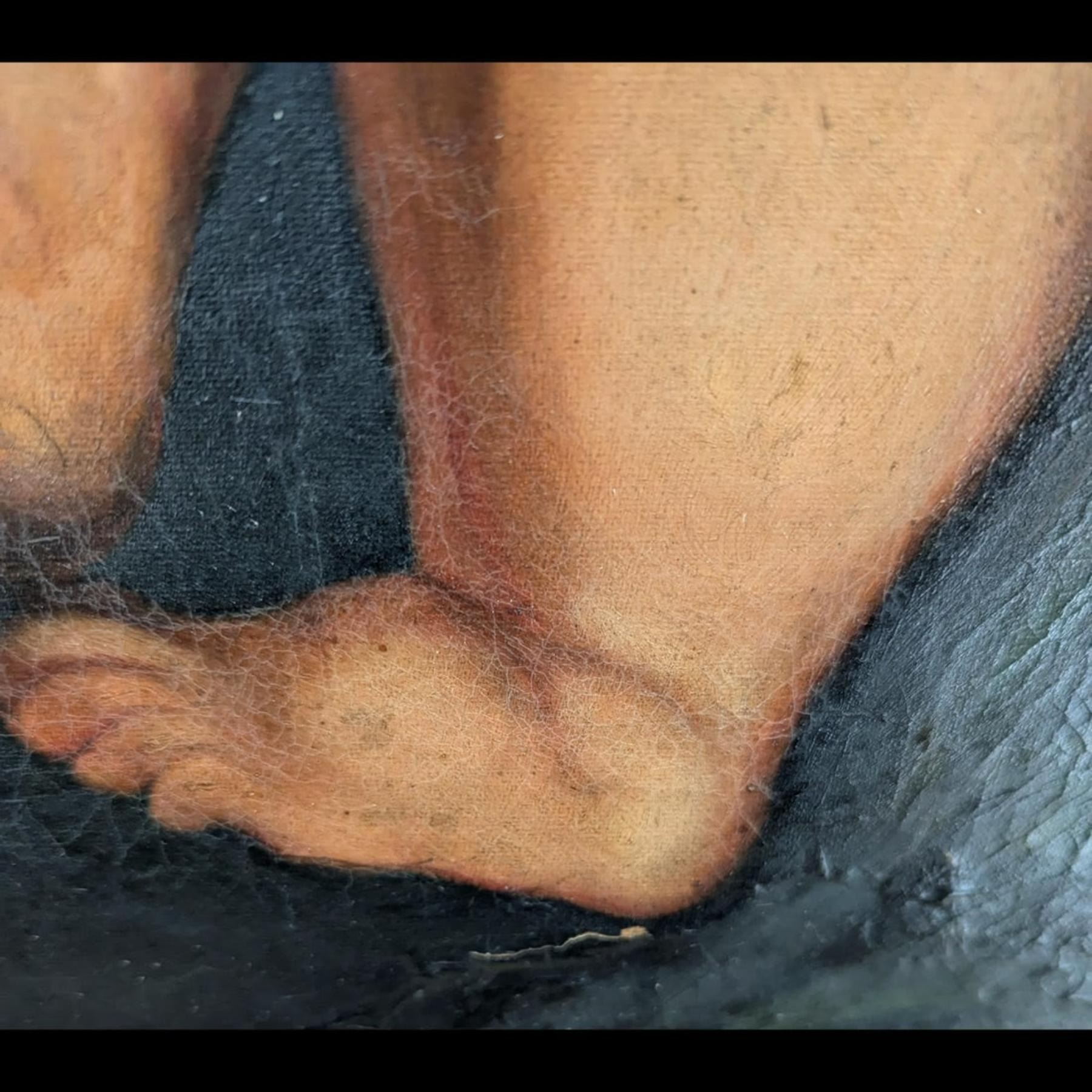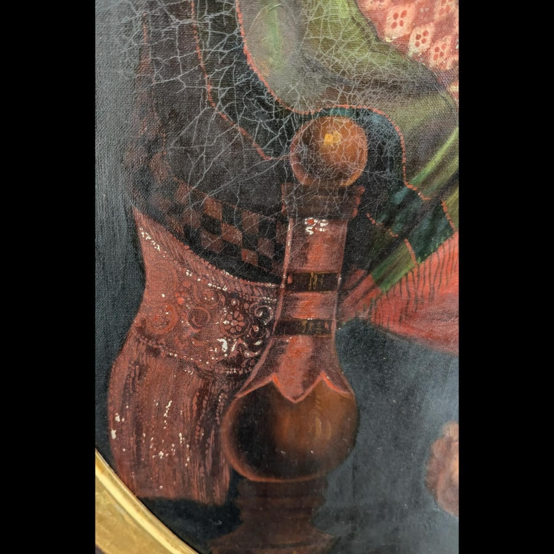 Large 18th-19th Century Oil On Canvas Family Portait Painting. Please note there is some wear and a few tears/repairs on the canvas, see pics. Measures approx. from 35 1/2" X 35 1/2", Sight measures approx. 27 1/2" in diameter.
