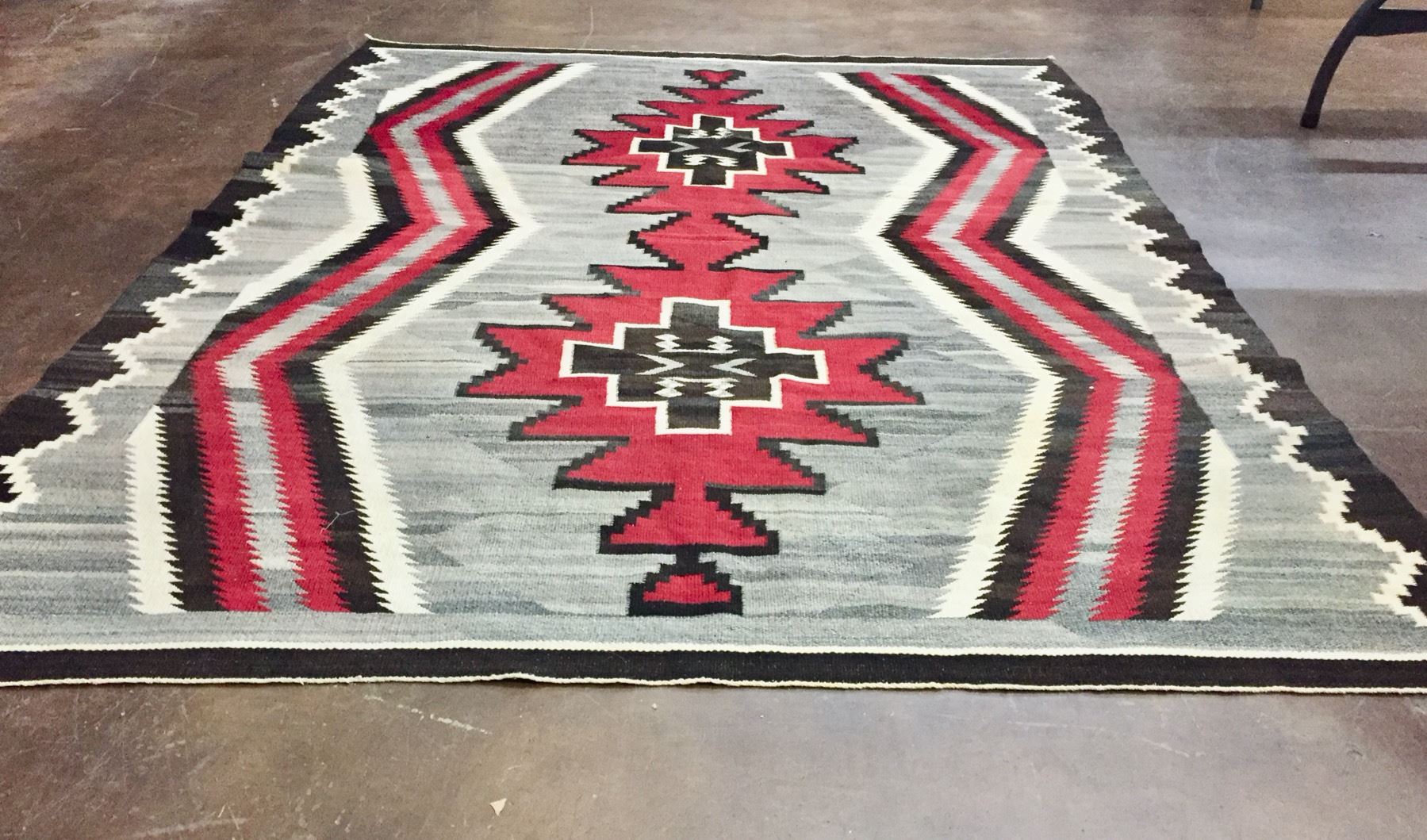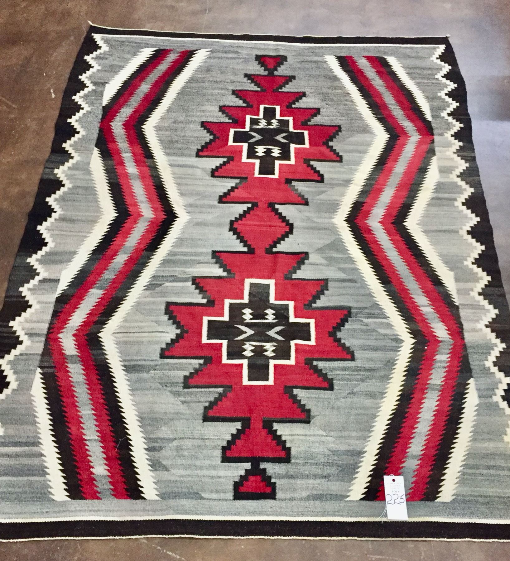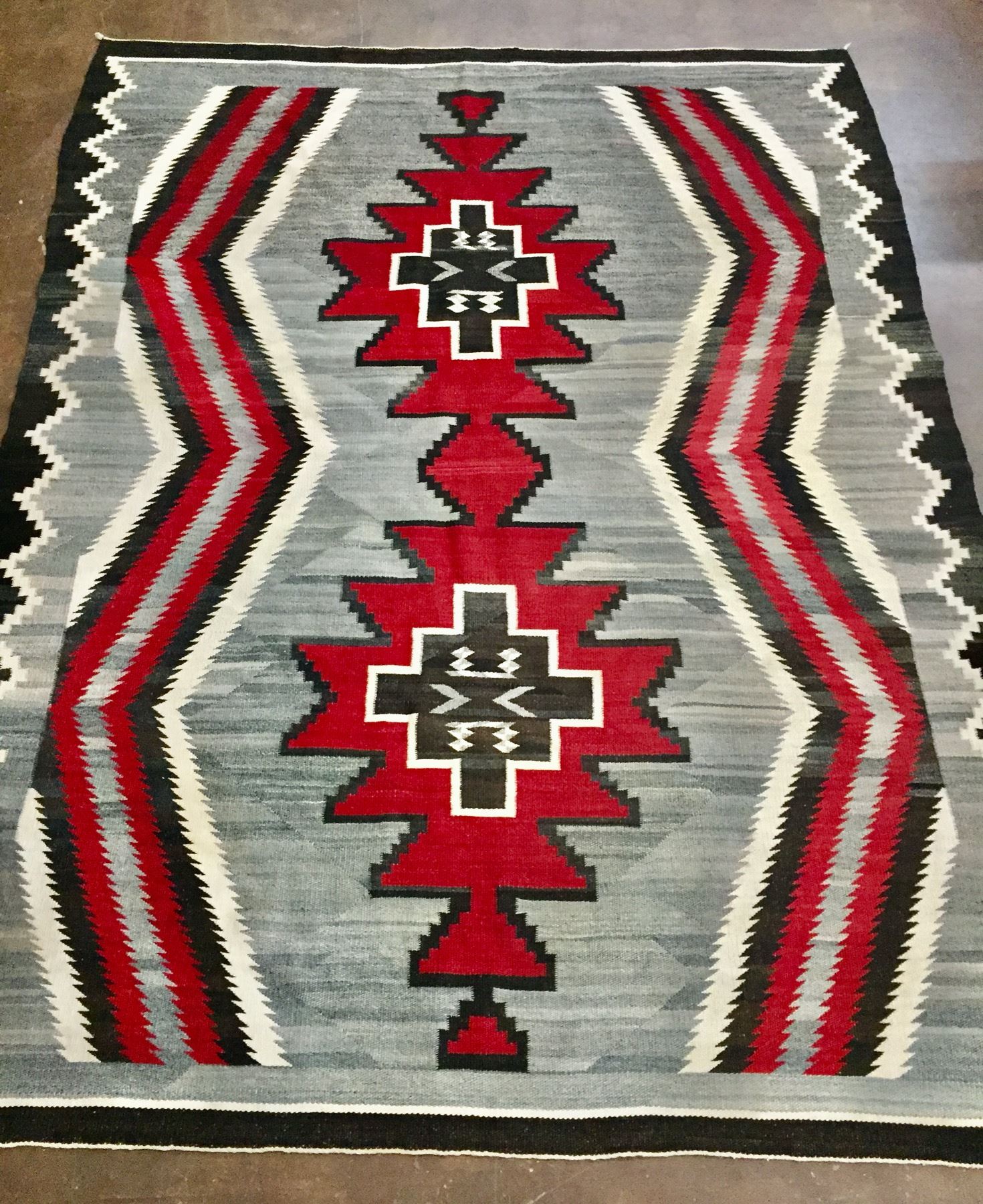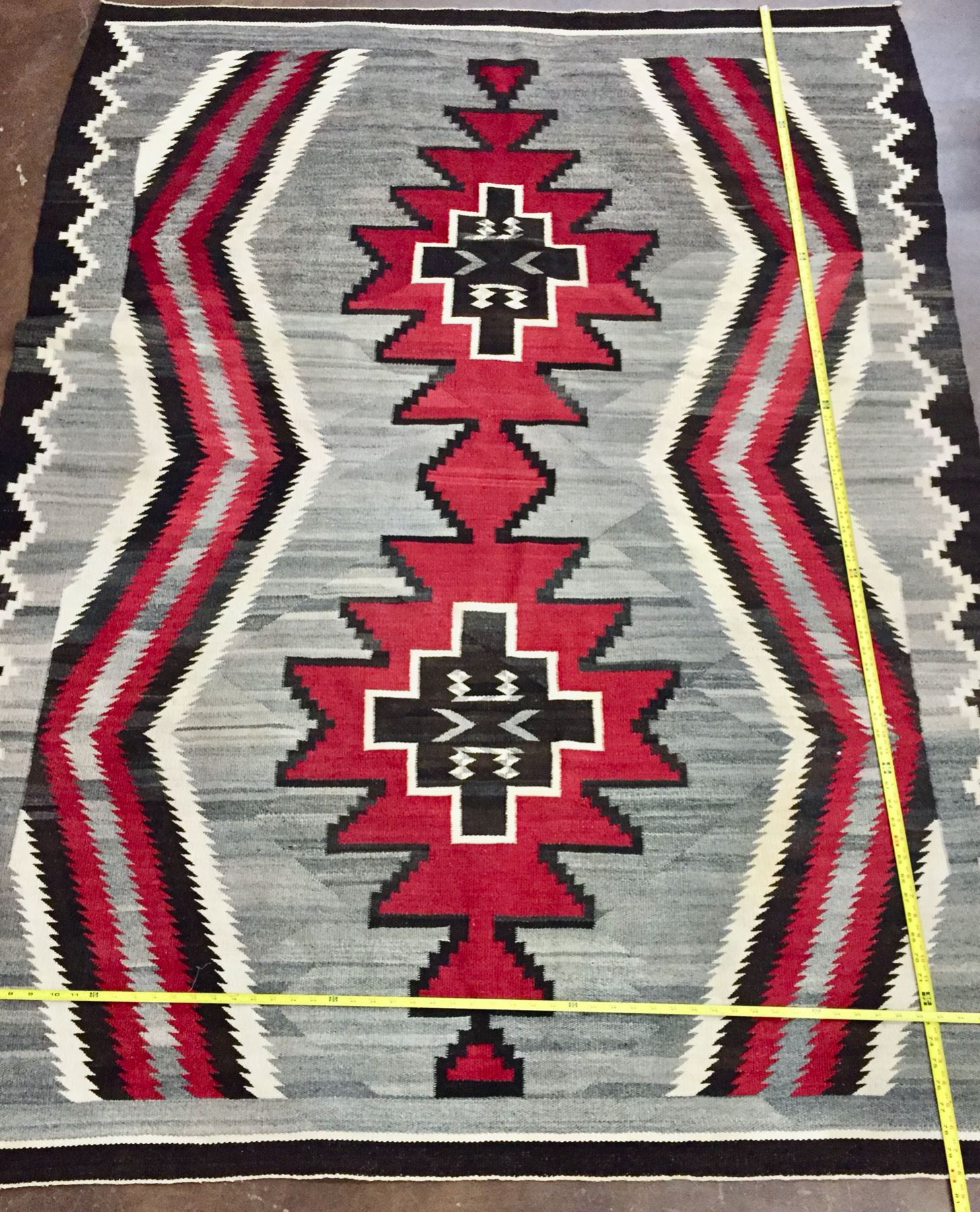 Description: Presented for sale in this lot is a good looking older Navajo textile. This was an old floor rug but it was well cared for. It uses hand spun wool in a stunning pattern with red, cream, brown and gray colors. Maker: Unknown Navajo Weaver. Approx. Age: Circa 1920s. Size: 80 inches long x 62 inches wide. Condition: Pretty good for its age, moderate wear expected. Please look closely at the pictures - they are an important part of our description. Shipping: There will be a $10 handling, packaging fee for shipping this lot. The actual cost of postage will be added on top of that.