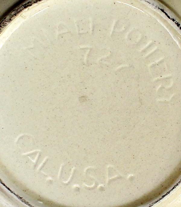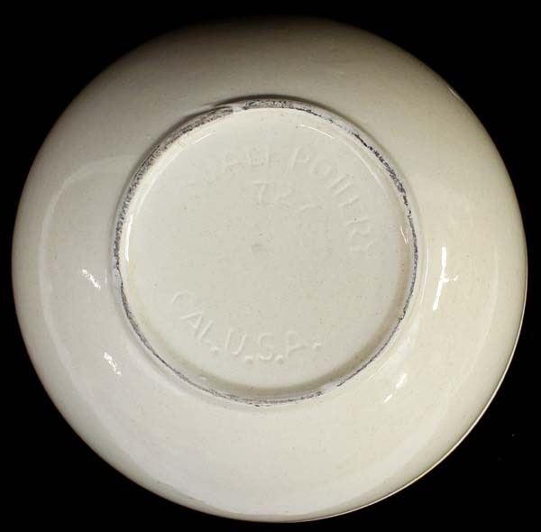 Large 1960s Miali Pottery Mixing Bowl, measures 6''H x 12.25''D, marked on the bottom ''Miali Pottery 727 California U.S.A.''