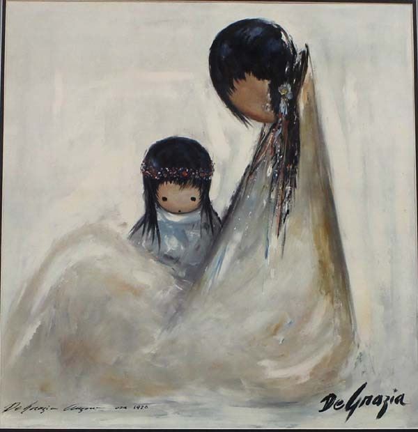 Large 1970 Signed DeGrazia Framed Print, professionally framed, double matted, and under glass, visual measures 22.25'' x 23.25'', overall framed measurement of 32.25'' x 33'', hand signed and dated