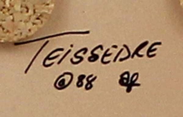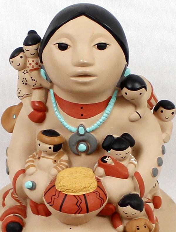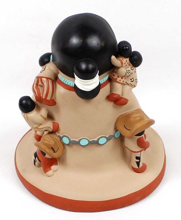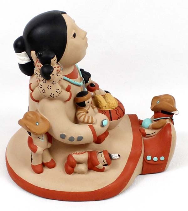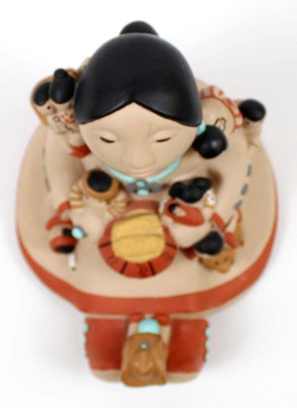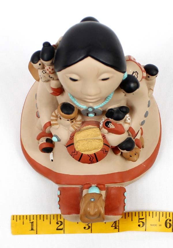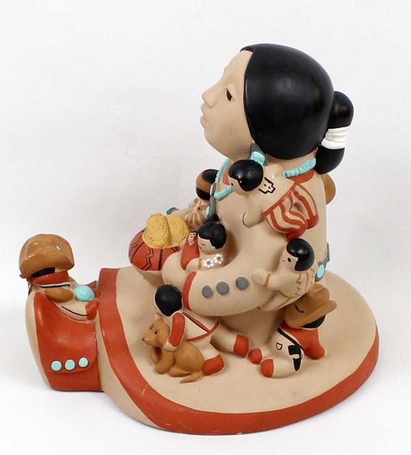 Large 1988 Cleo Teissedre Storyteller, measures 6'' x 6'' x 7'', the child sitting on her feet has 2 chips out of his cowboy hat, marked on the bottom