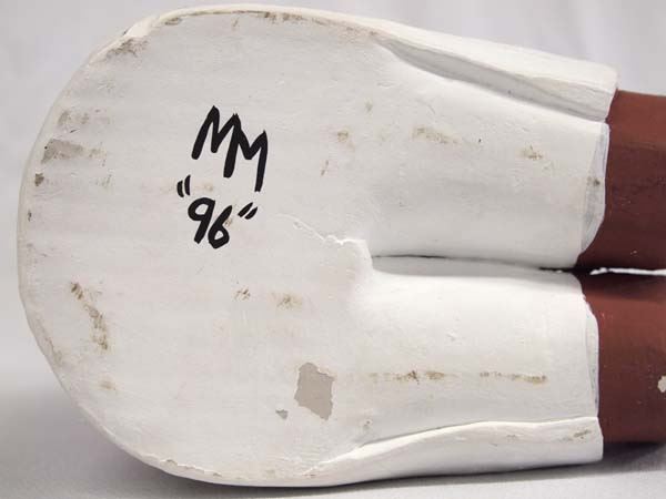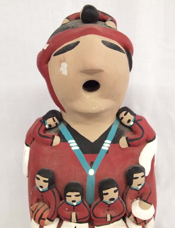 Large 1996 Native American Zia Storyteller Doll by Mae Martin, measures 11.75''H x 5''W x 7''D, hallmarked on bottom by artist, some paint loss and chipped paint