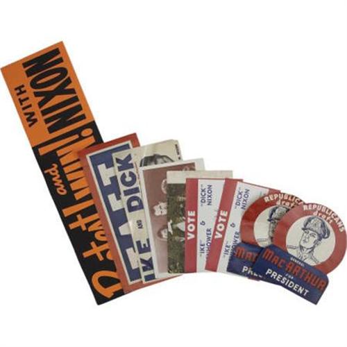 <B>Large 30 Piece Presidential Campaign Paper Lot,</B></I> including: materials from Bryan, William Howard Taft, Theodore Roosevelt, Douglas MacArthur, Eisenhower, Nixon, Robert Taft, Henry Krajewski (of the Poor Man’s Party), and others. Some duplication. Most near fine or better.<BR><BR><b>Shipping:</b> Miscellaneous Collectibles, Smal (<a target="_blank" href="http://www.heritageauctions.com/common/shipping.php">view shipping information</a>)