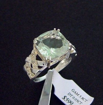 Large 5.80 ct. Green Amethyst and Diamond Ring in Sterling Silver - Size 7.5