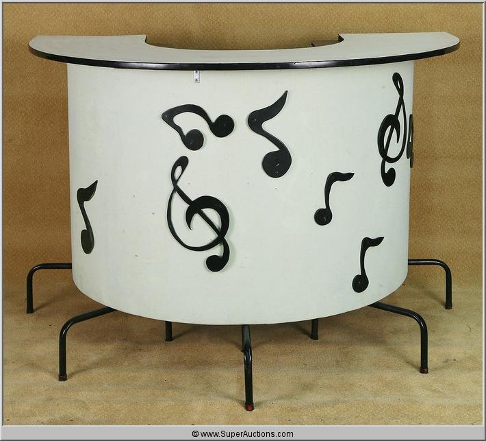 Large White One-Half Circle Bar with Black Iron Legs and 3D Music Note Front {Sku #2009795}