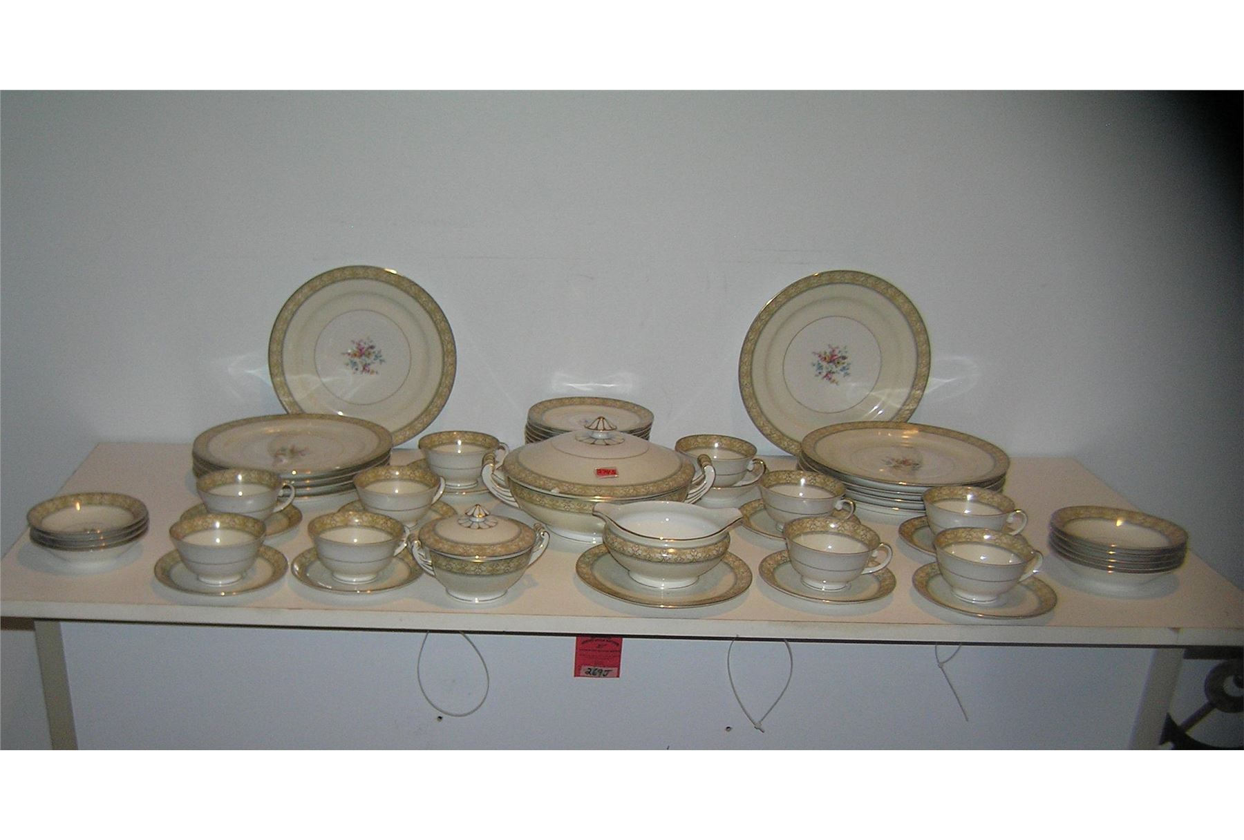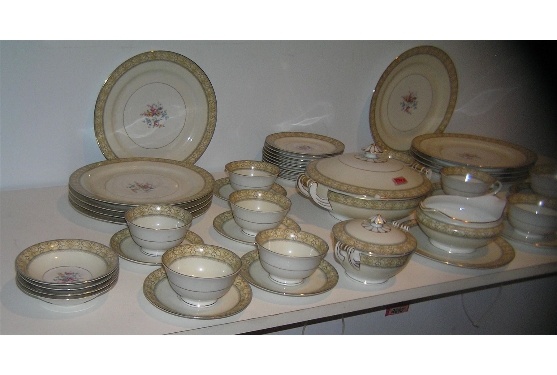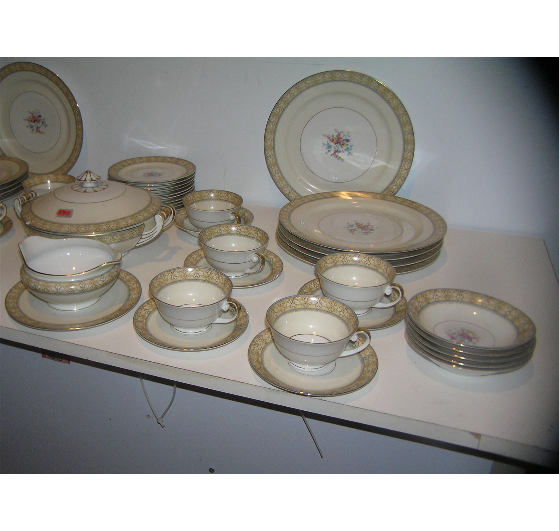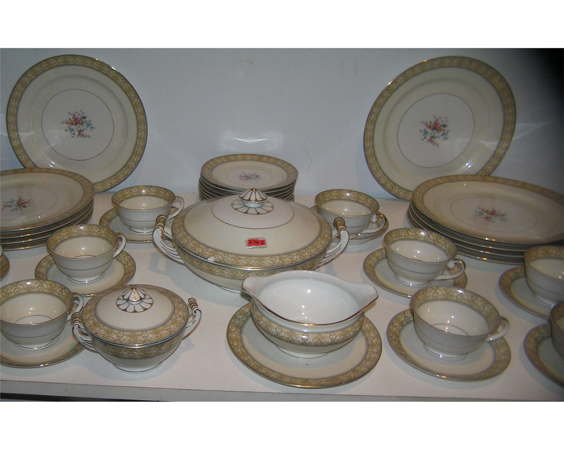Large 54 piece floral decorated and gold trimmed Czechoslovakian dinnerware set signed MZ with crown mark a great early set circa 1930's est. value $500.00-$600.00
