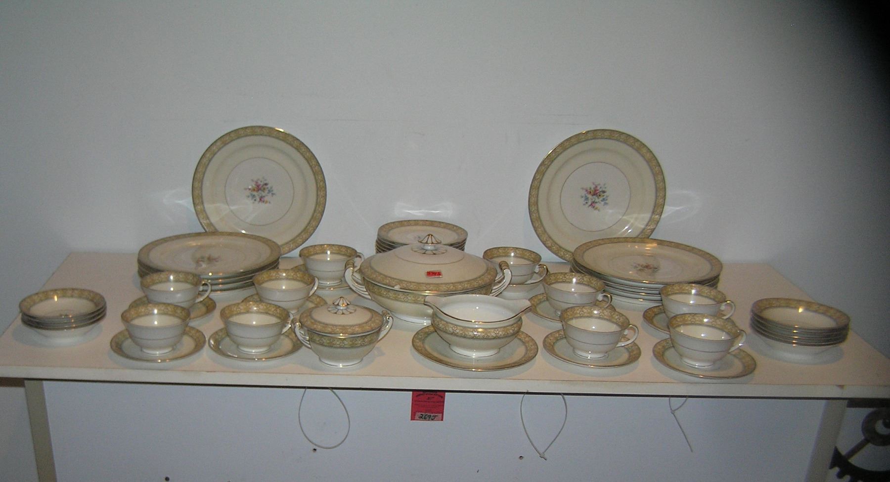 Large 54 piece floral decorated and gold trimmed Czechoslovakian dinnerware set signed MZ with crown mark a great early set circa 1930's est. value $500.00-$600.00