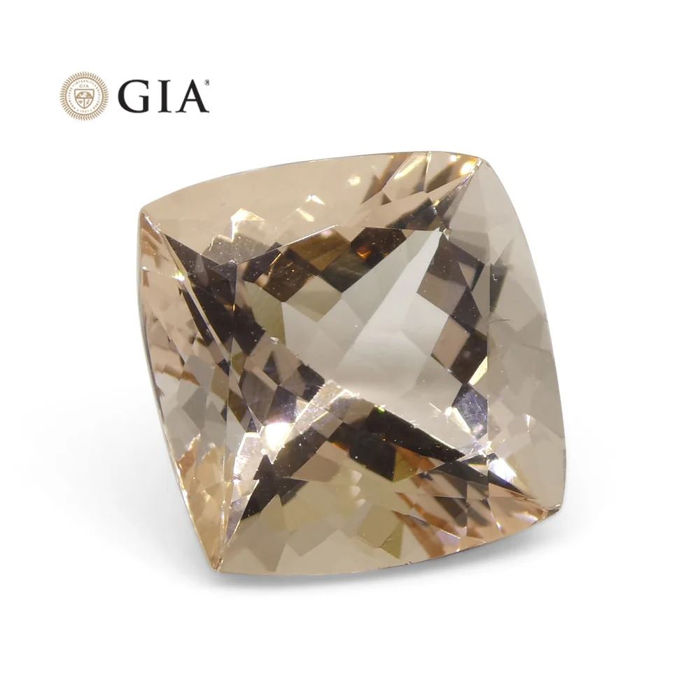 Impressive VVS1 Eye Clean 6.27 Ct Pink-Orange Morganite is a cushion brilliant cut measuring 11.80 x 11.67 x 7.53 mm. Displays a medium light tone and moderate strong saturation. This morganite is beautiful! Origin: Brazil. Treatment: None. Please see the certification for additional information.