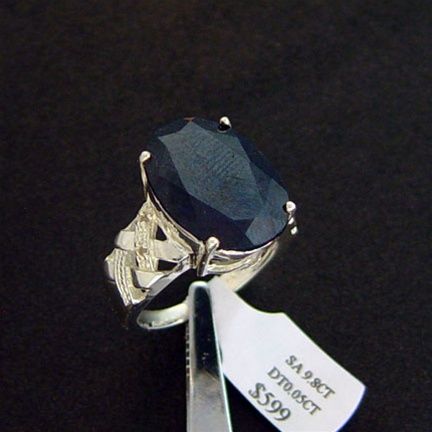 Large 9.8 ct. Genuine Sapphire and Diamond Ring in Sterling Silver - sIZE 7.5