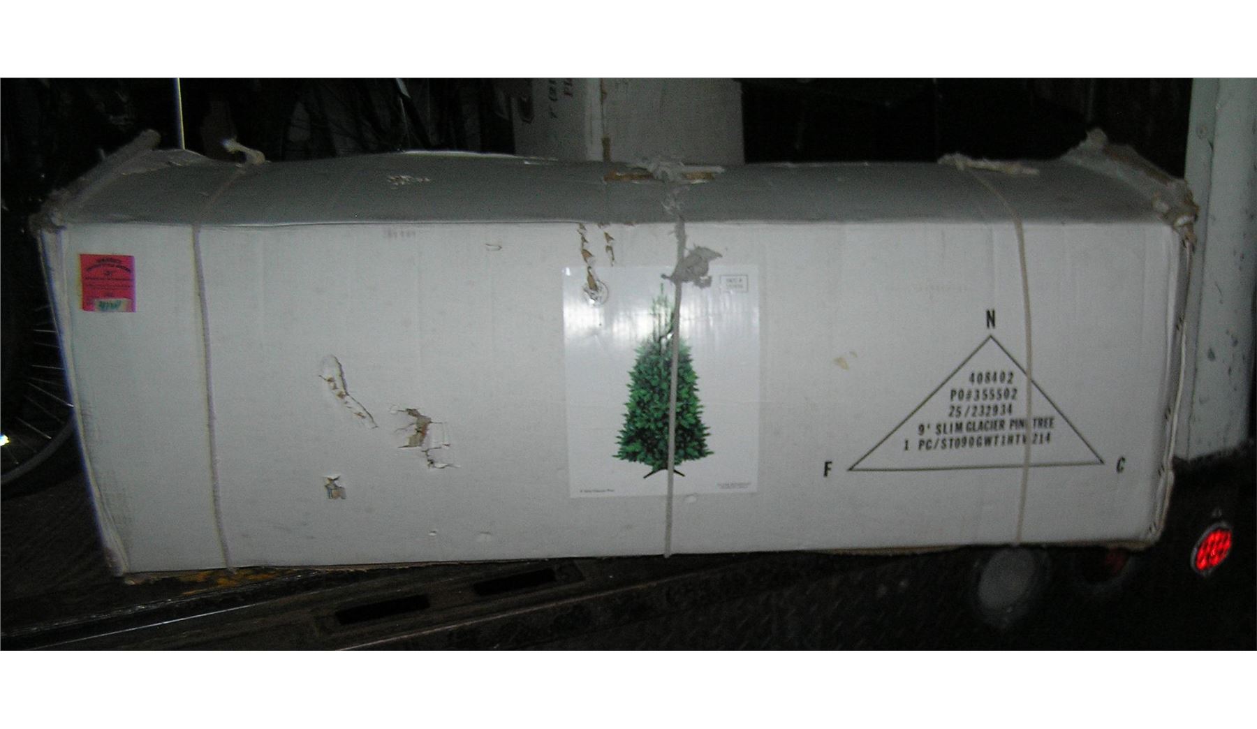 Large 9 foot slim glacier pine Christmas tree with original box est. value $100.00-$125.00